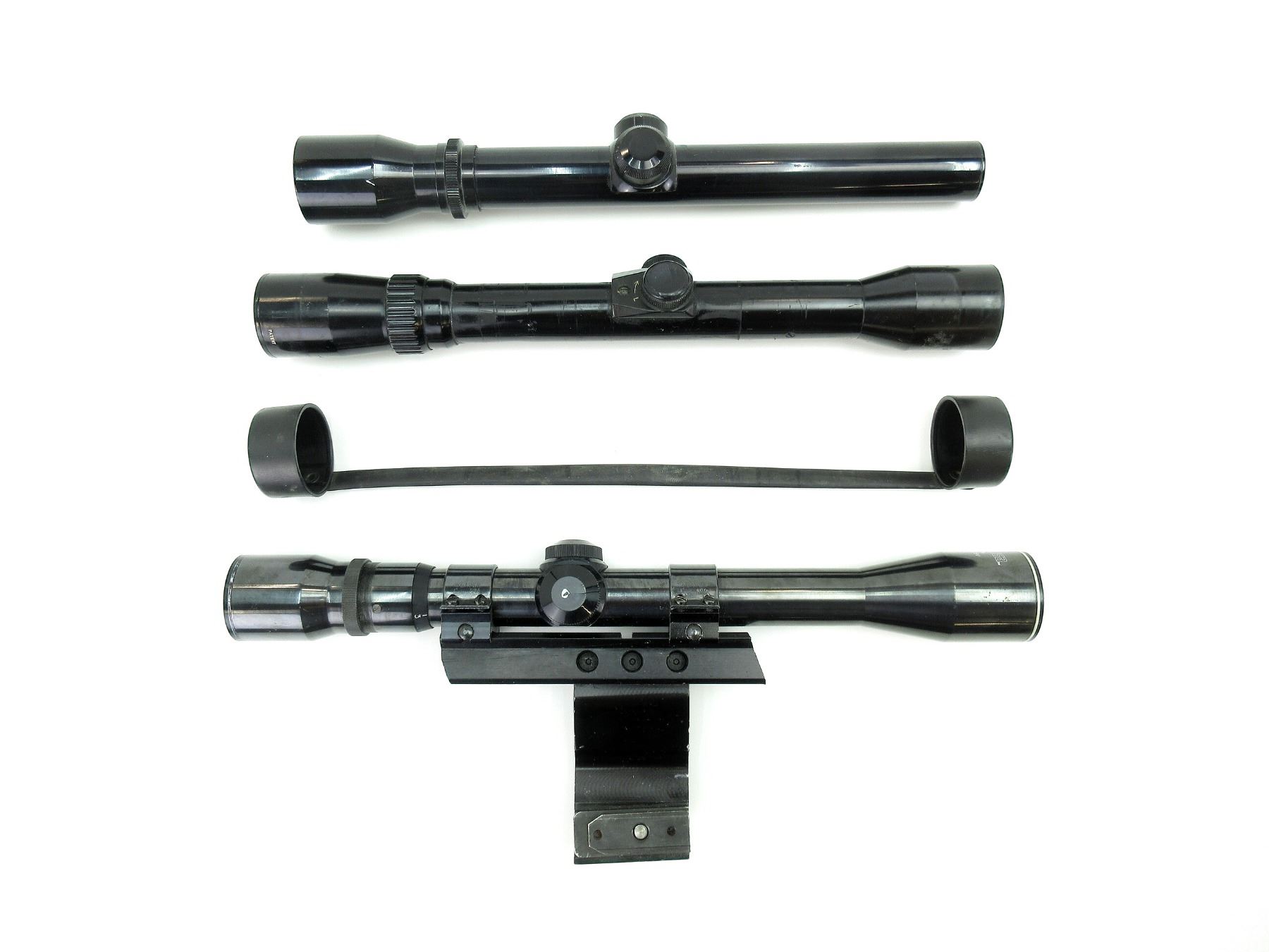 LOT INCLUDES; (1) CHALLENGER 3-9X32MM RIFLE SCOPE, CLEAR OPTICS, DUPLEX RETICLE, 1" TUBE DIAMETER, WORKING MAGNIFICATION RING, WINDAGE & ELEVATION KNOBS TURN, SCOPE SHOWS WEAR & TEAR / USE MARKS, WITH WEAVER SCOPE RINGS & POSSIBLY RUGER MINI 14 SCOPE MOUNT, (1) TWILIGHT 2.5X20MM RIFLE SCOPE, CLEAR OPTICS, CROSSHAIR RETICLE, 1" TUBE DIAMETER, WINDAGE & ELEVATION KNOBS TURN, (1) MONOSCOPE 3-7X31MM RIFLE SCOPE, CLEAR OPTICS, CROSSHAIR RETICLE, 1" TUBE DIAMETER, WORKING MAGNIFICATION RING, WINDAGE & ELEVATION KNOBS TURN, WITH BIKINI STYLE LENS COVER, SCOPE SHOWS WEAR & TEAR / USE MARKS. SEE PHOTOS.