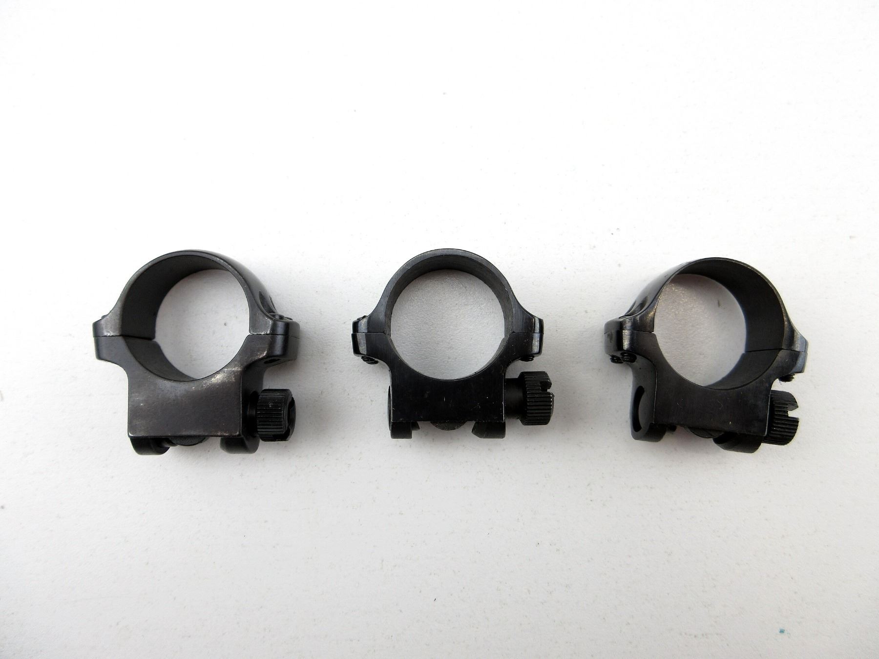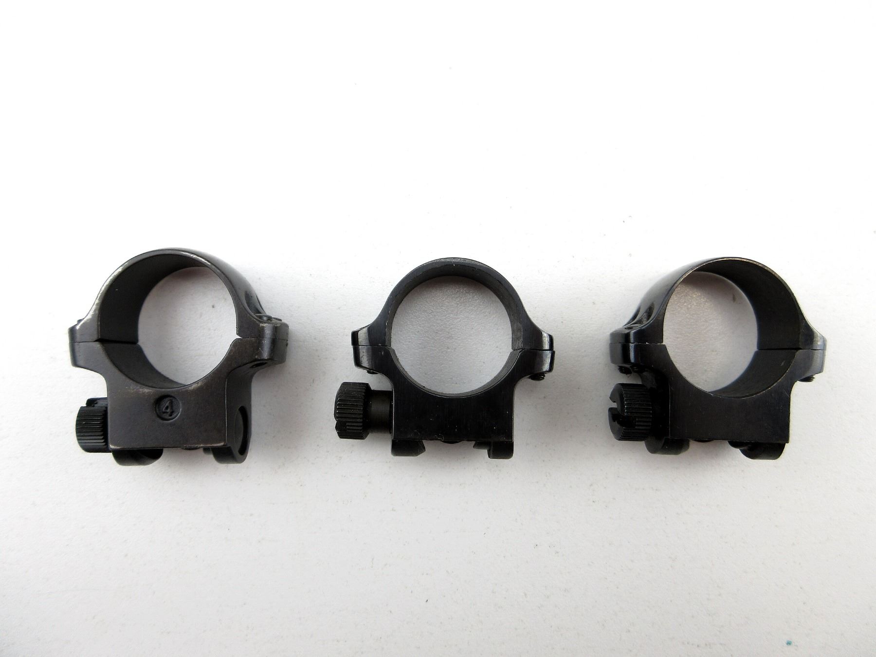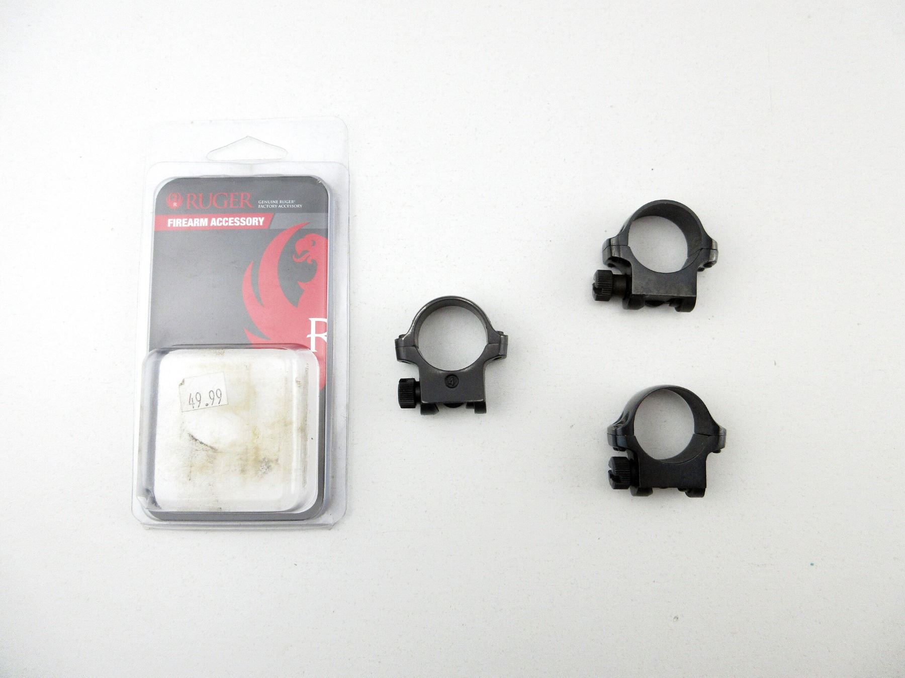 LOT INCLUDES; (1) PAIR OF 1" RUGER SCOPE RINGS, BLUED STEEL & (1) RUGER #4 SCOPE RING, BLUED STEEL, APPEARS NOS, IN ORIGINAL PACKAGING. MAY REQUIRE FITTING. SEE PHOTOS.