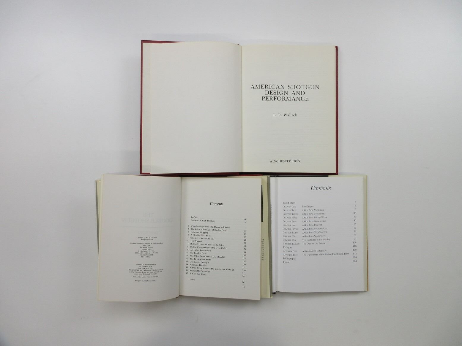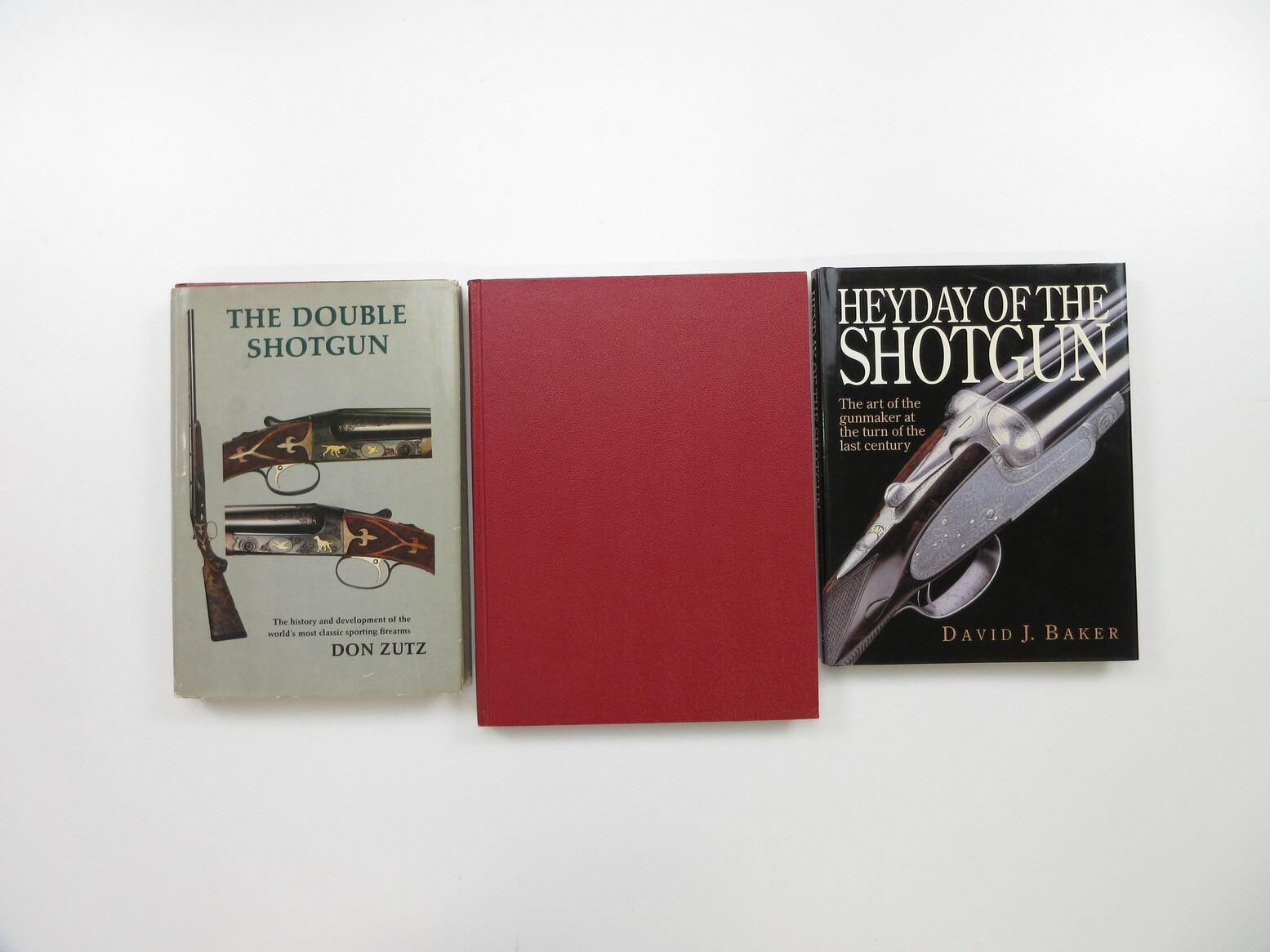 ASSORTED SHOTGUN BOOK LOT. LOT INCLUDES; (1) "THE DOUBLE SHOTGUN, THE HISTORY AND DEVELOPMENT OF THE WORLD'S MOST CLASSIC SPORTING FIREARMS" BOOK BY DON ZUTZ, HARD COVER WITH DUST COVER, ISBN: 0-87691-272-2, (1) "HEYDAY OF THE SHOTGUN, THE ART OF THE GUNMAKER AT THE TURN OF THE CENTURY" BOOK BY DAVID J. BAKER, HARD COVER WITH DUST COVER, ISBN: 1-57157-200-7 & (1) "AMERICAN SHOTGUN DESIGN AND PERFORMANCE" BOOK BY L.R. WALLACK, HARD COVER, ISBN: 0-87691-236-6. SEE PHOTOS.