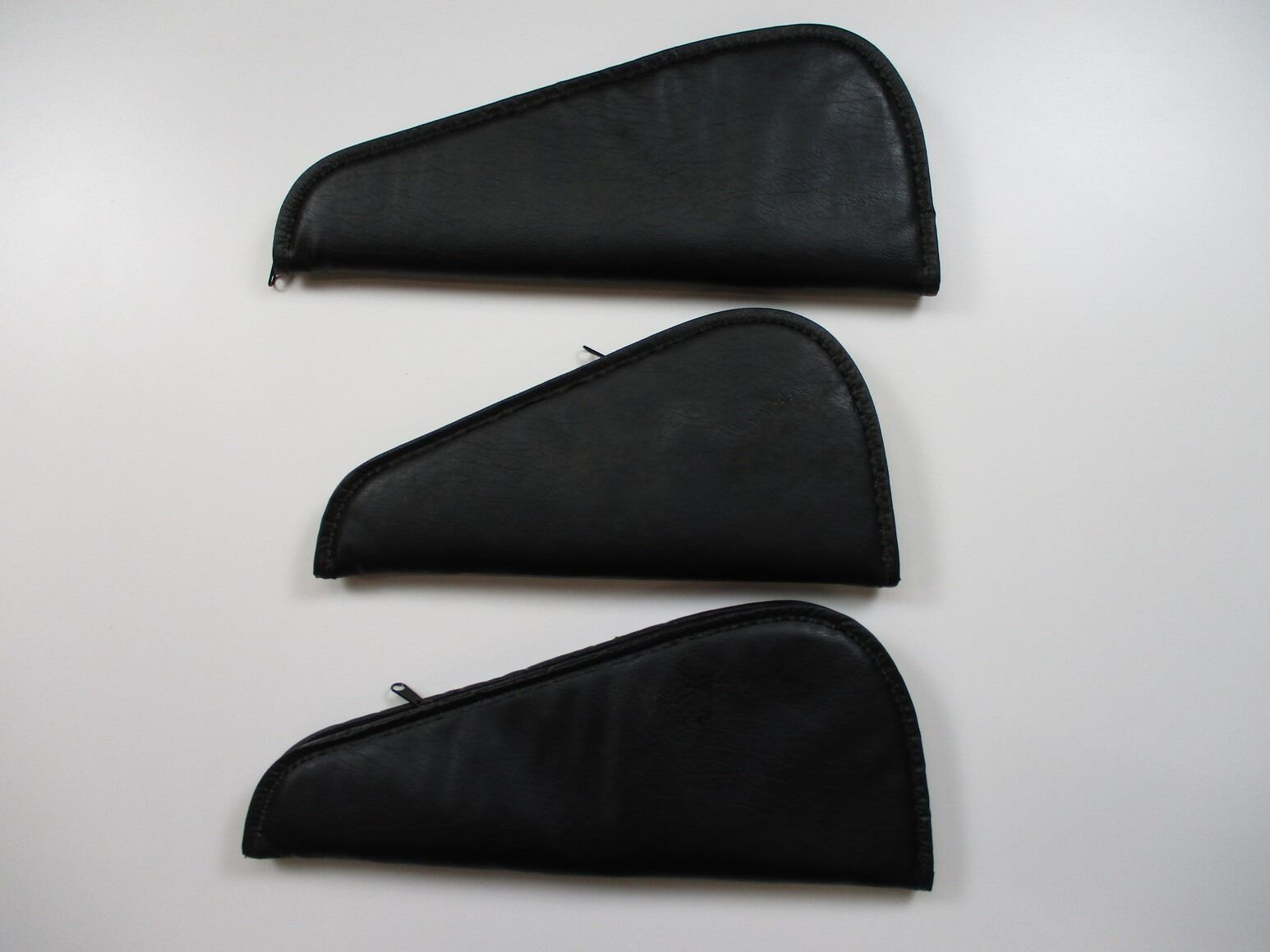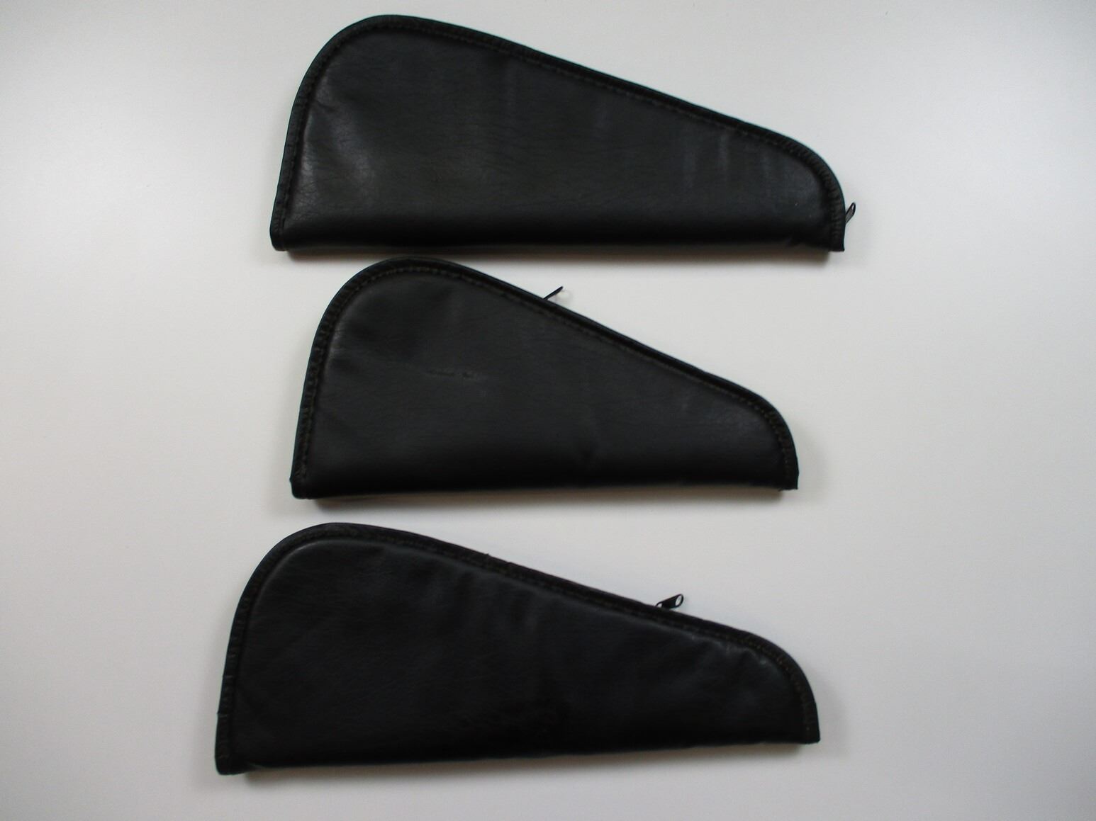 ASSORTED SOFT PISTOL CASES , LOT OF 3. BLACK VINYL CASES, PADDED, APPROX. 16.25 X 6", 1 CASE APPROX. 14 X 6".