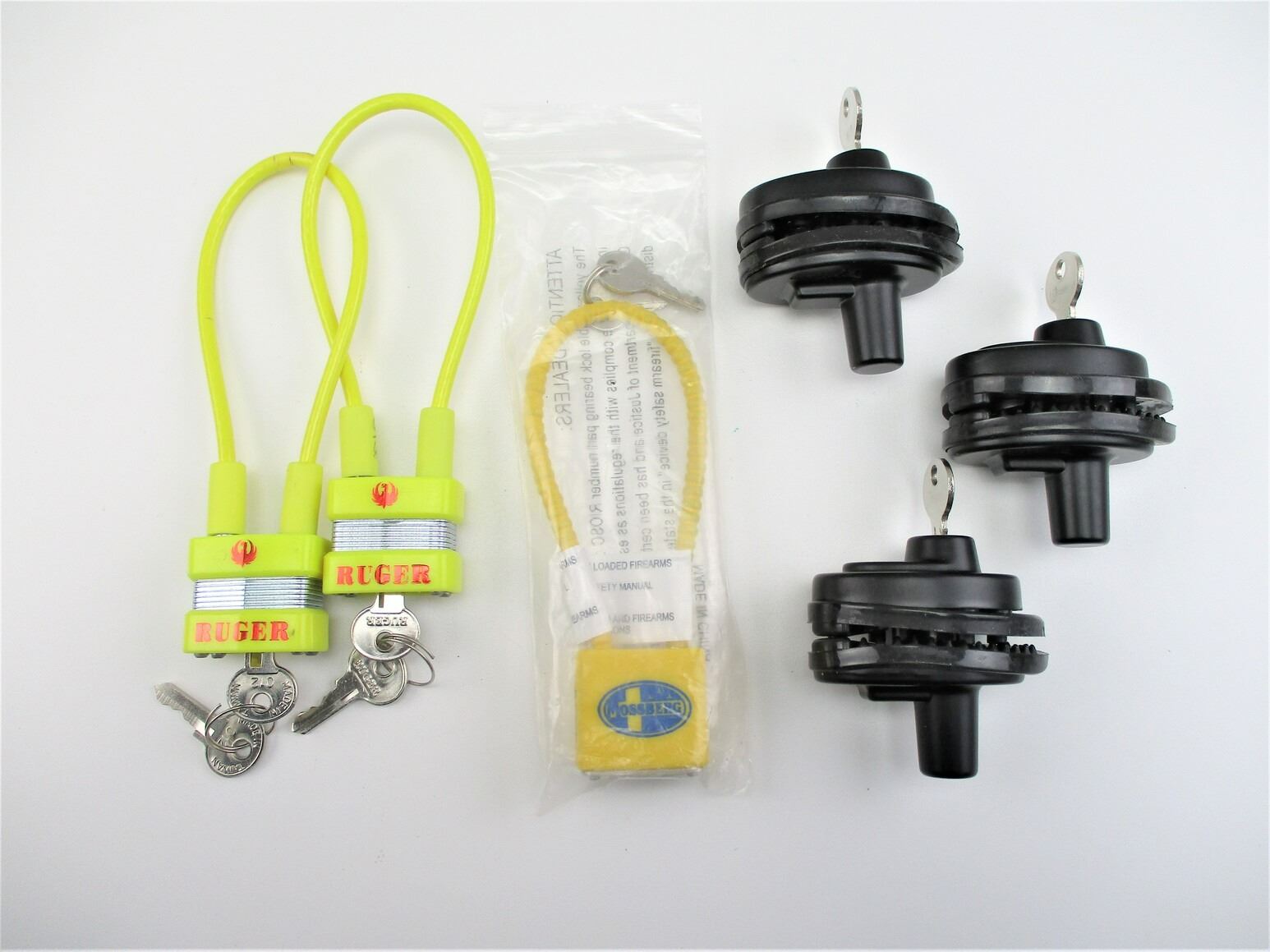 (3) TRIGGER LOCKS WITH KEYS, (3) CABLE LOCKS WITH KEYS.