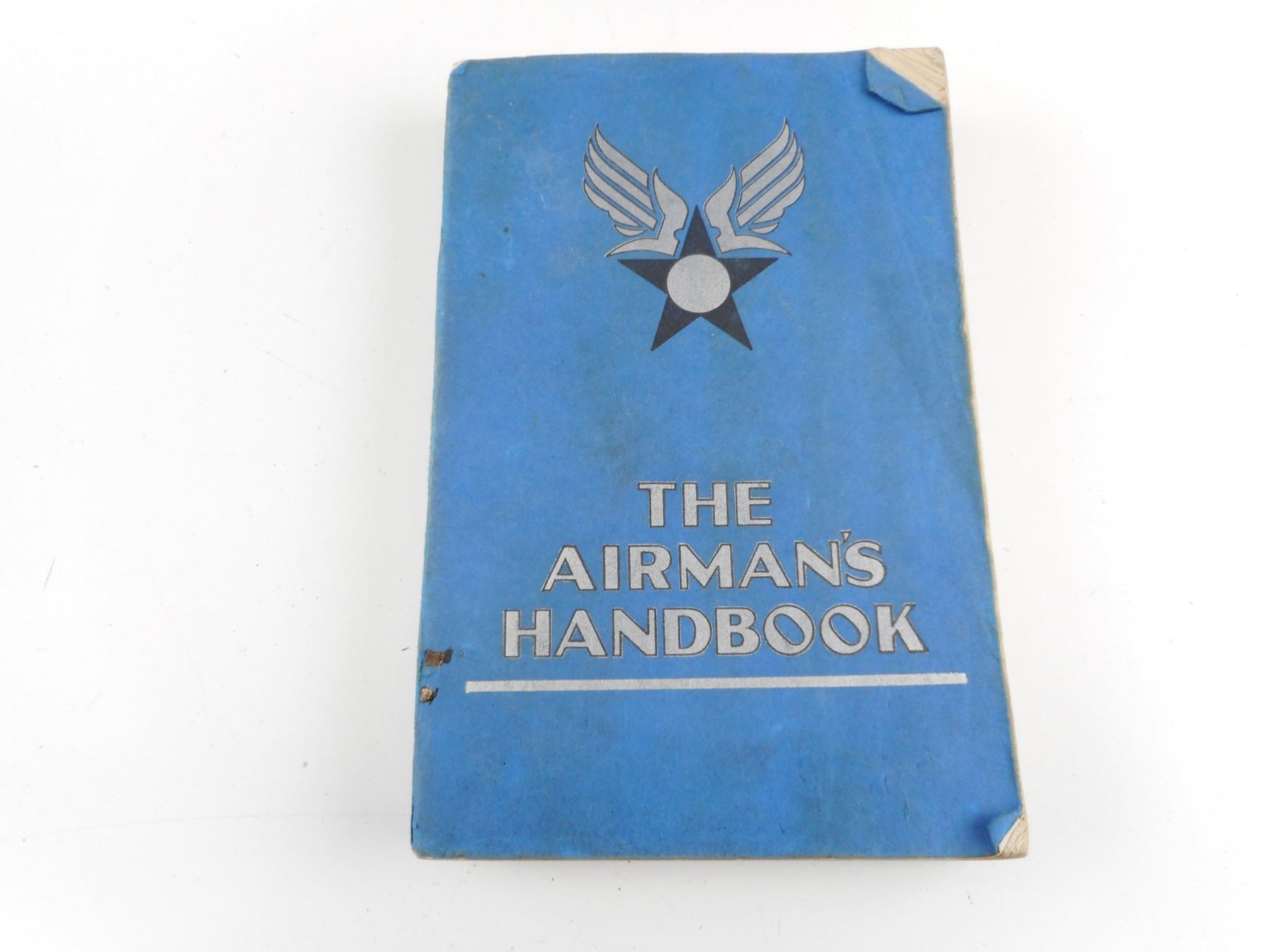 (1) US 1945 HEAD PHONES (3) US AIR FORCE WEDGE CAPS (1) US AIR MANS BOOK AND UNKNOWN EAR PROTECTORS. SEE PHOTO