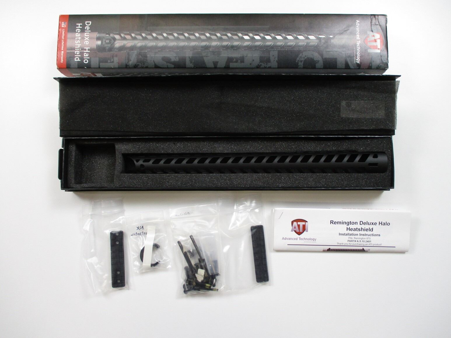 ATI DELUXE HALO HEATSHIELD , FITS REMINGTON 870, INCLUDES GHOST RING SIGHTS, STEEL, APPROX. 16.25" OAL, WITH 2" DOVETAIL PICATINNY RAILS, & MOUNTING HARDWARE, NOS.