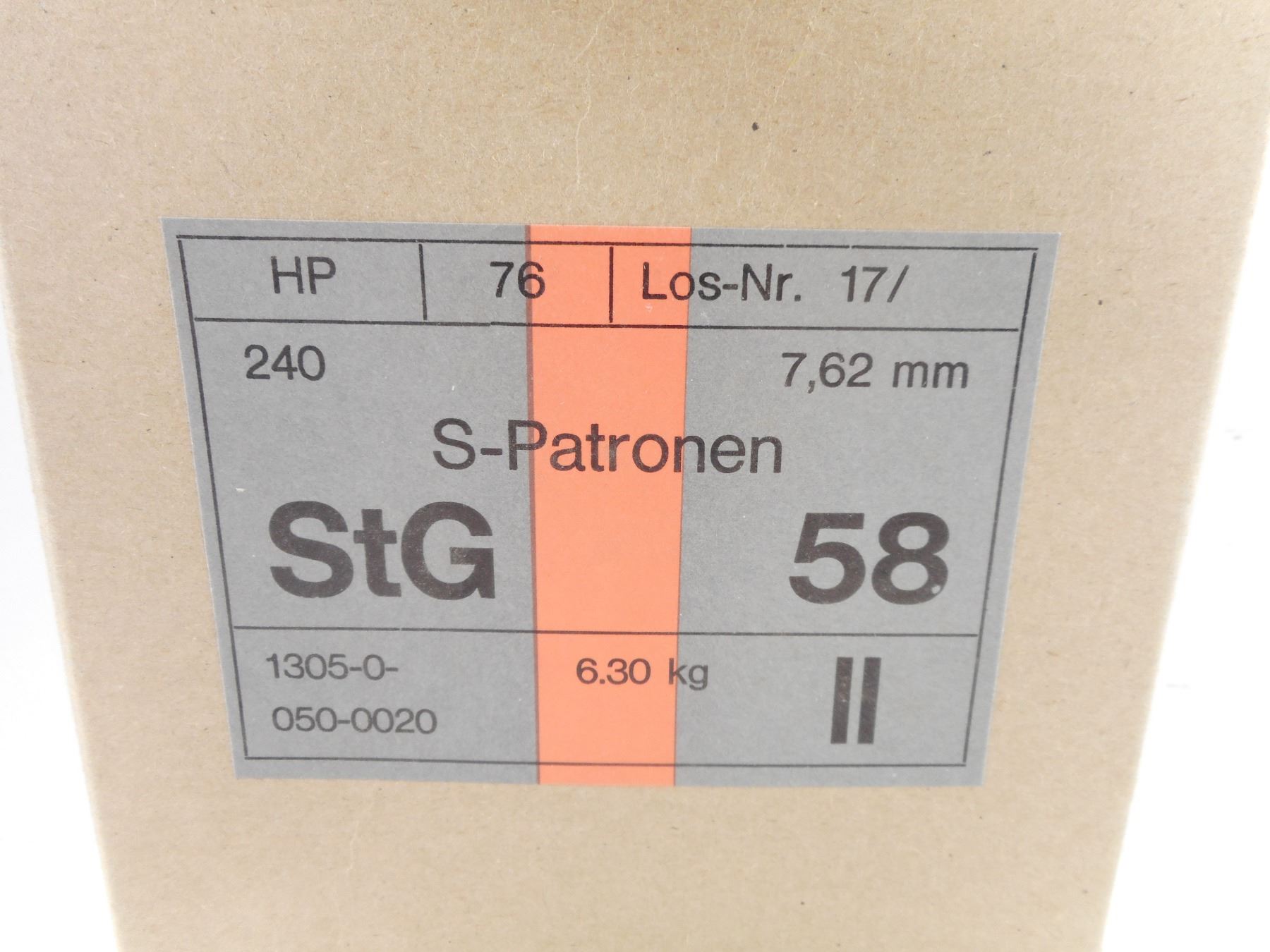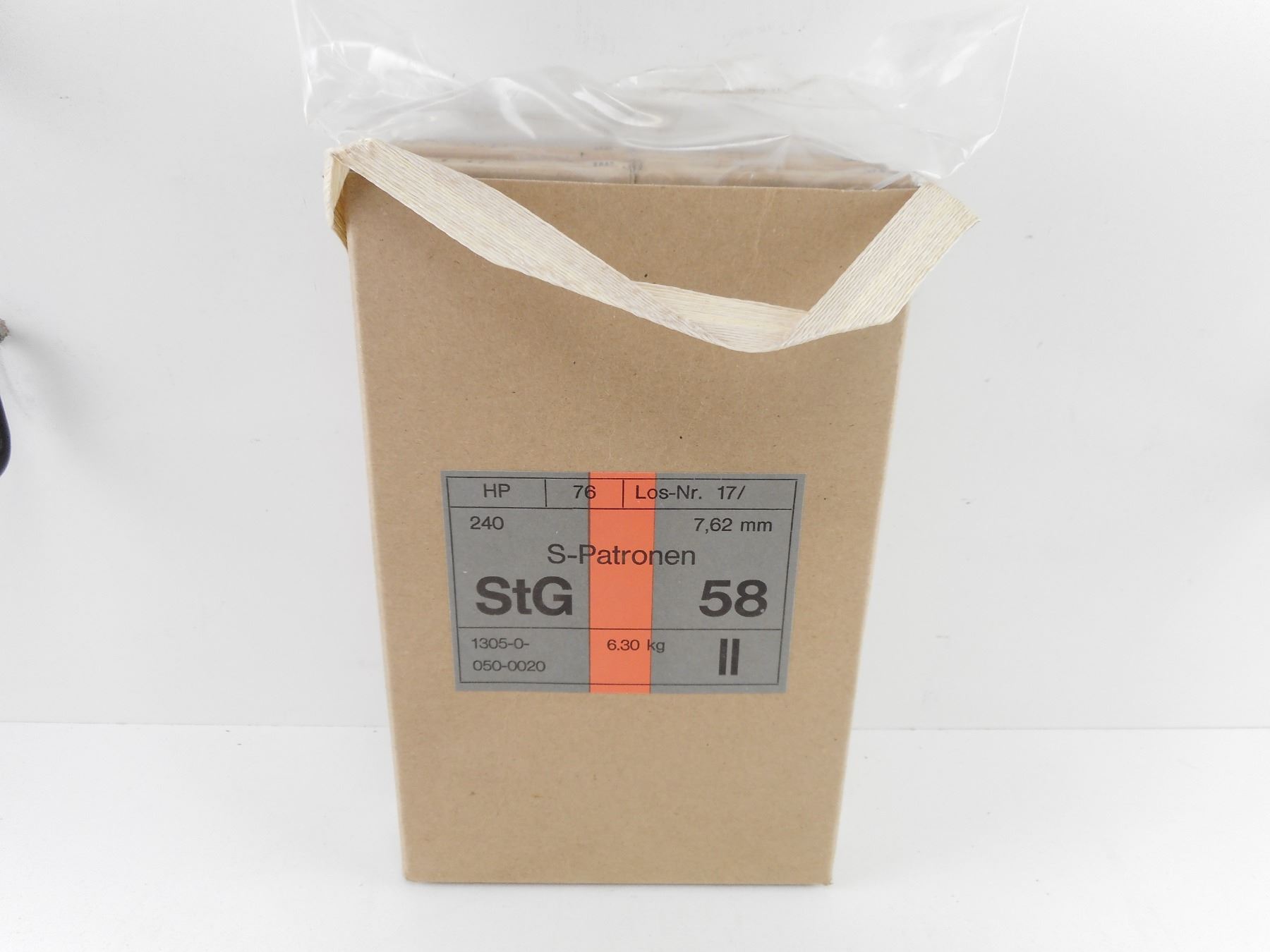 AUSTRIAN 7.62 STG58 AMMO , 240 RND BATTLE PACK, 7.62 NATO, MFG BY HERTEN BERGER, RED STRIPE, UNSURE IF RELOADABLE BRASS.