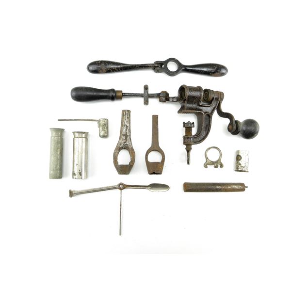 LOT INCLUDES; (1) RELOADING DIE, MARKED: "B-1106", MISSING PIECES, SOME RUSTING, (1) RELOADING DIE, MAR...
