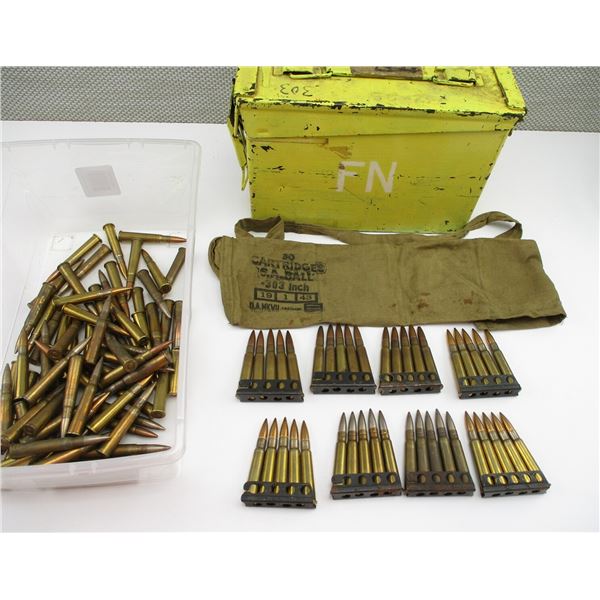 MILITARY .303 BRITISH AMMO, 110 RNDS, (8) STRIPPER CLIPS), (1) BANDOLIER, THERE ARE NEW SHIPPING RESTRICTIONS, PLEASE MAKE SURE YOU HAVE READ