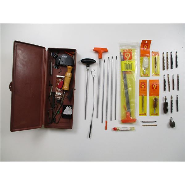 ASSORTED CLEANING ACCESSORIES, INCLUDES: ALUMINUM CLEANING RODS, COMES IN CALIBER .22LR & POSSIBLY .30 CAL, INCLUDES VARIOUS CLEANING BRUSHES &a...