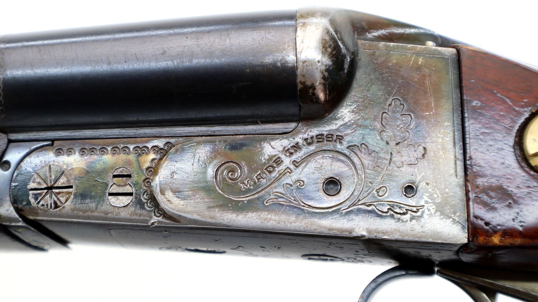 Wear: Metal finish shows a few light rust speckles, scratches, handling marks and wear. Stocks show some marks, scratches and wear.