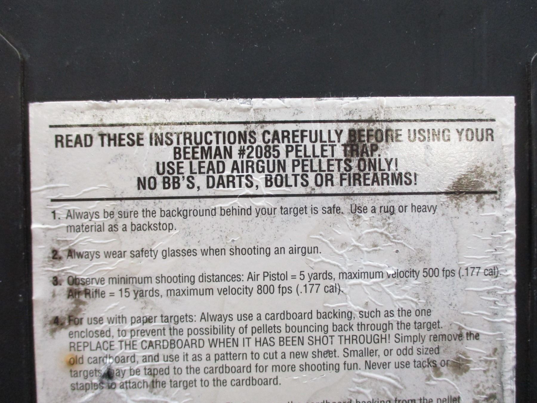 BEEMAN PELLET TRAP , SPORTSMAN SERIES, MODEL 2085, MISSING TARGET PAPER.