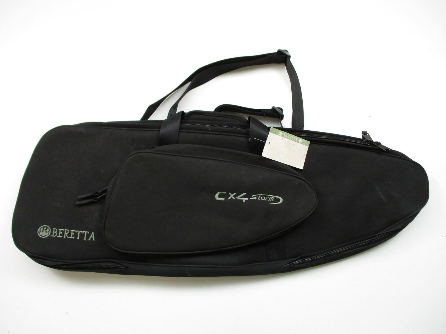 BERETTA Cx4 STORM SOFT CASE , PADDED, APPROX. 32 X 10", VELCRO TIE DOWN POINTS, SIDE INNER POUCH, SIDE OUTER POUCH WITH ZIPPER, CARRY STRAPS, SHOULDER STRAPS. NOTE: TOP OF 1 ZIPPER TAB BROKEN. FACTORY TAG.