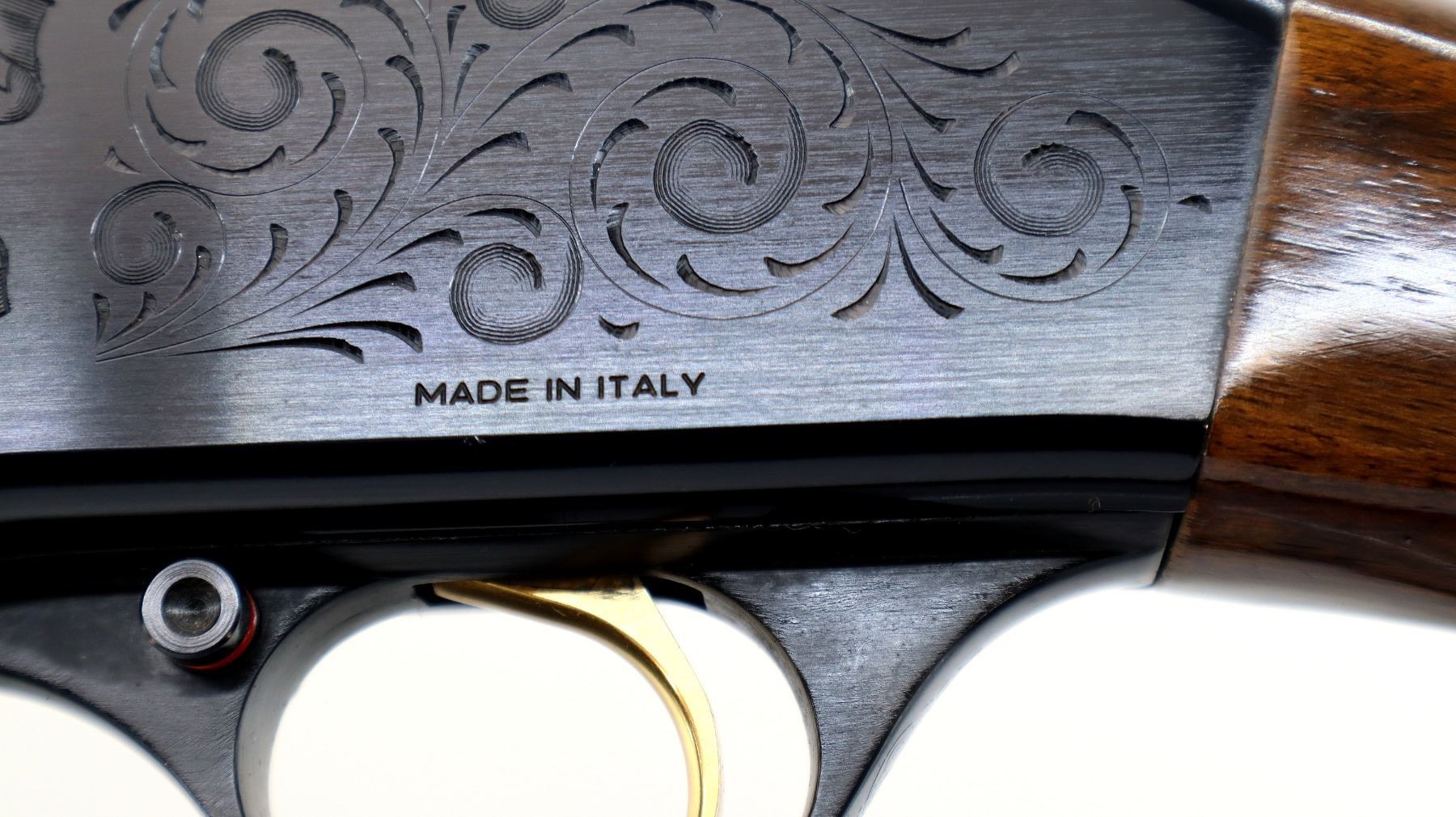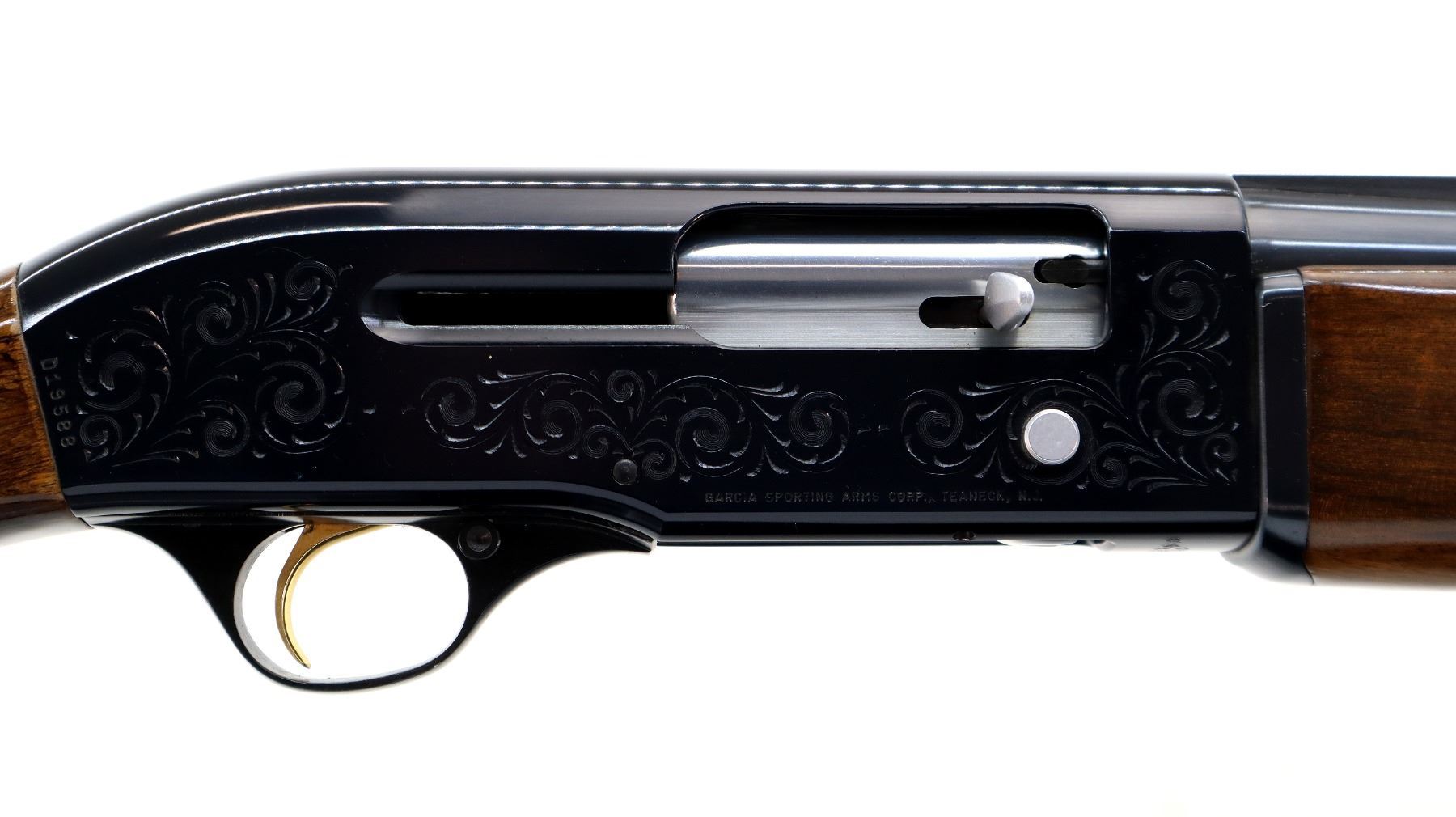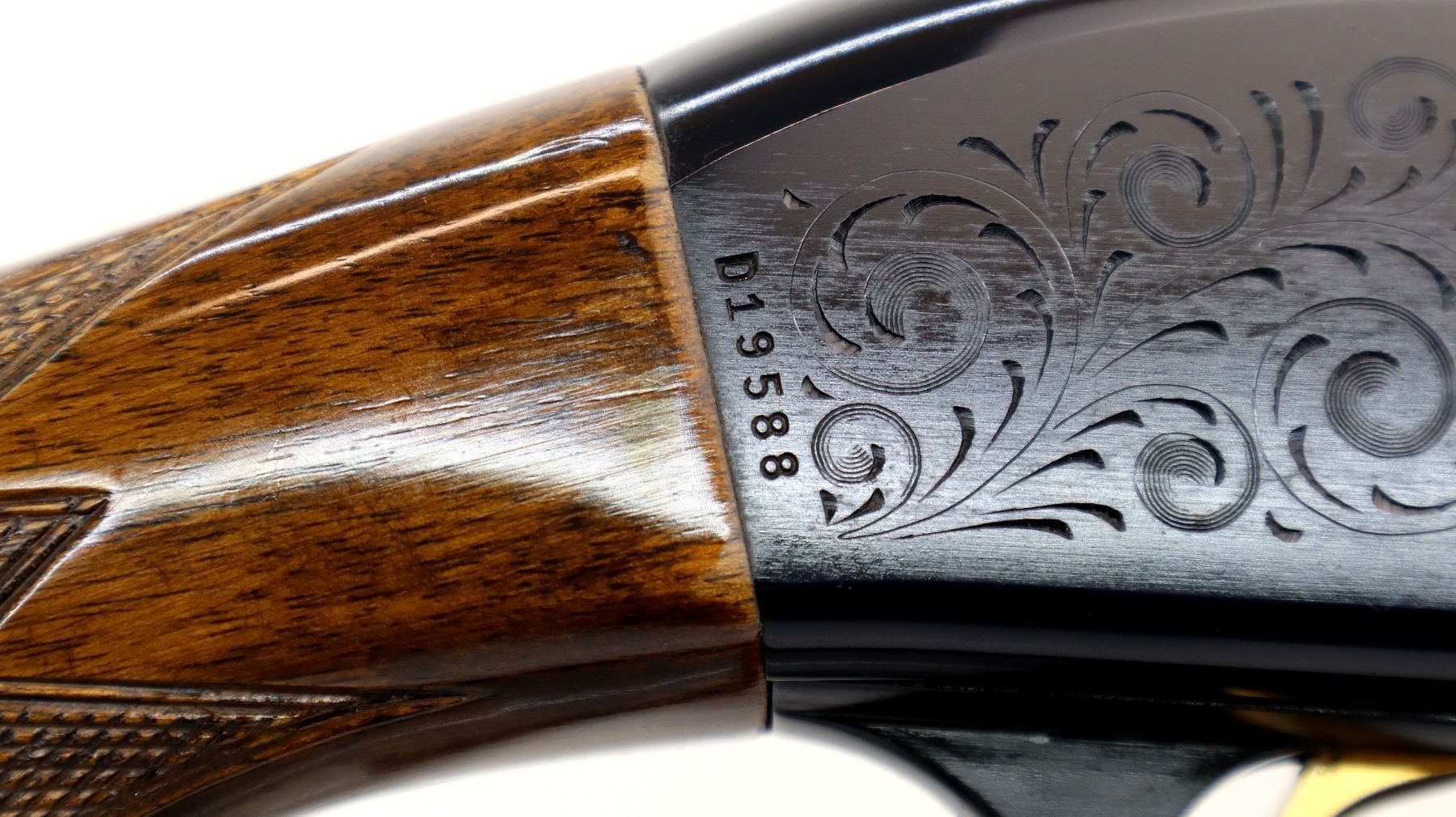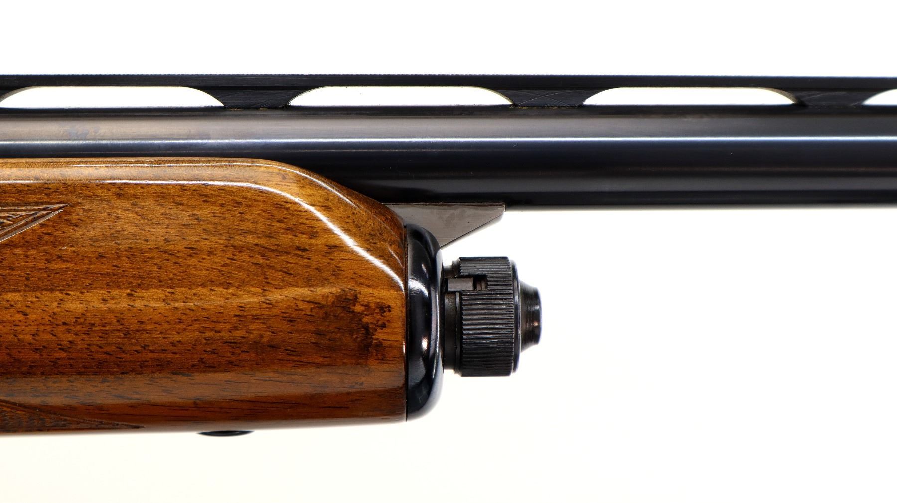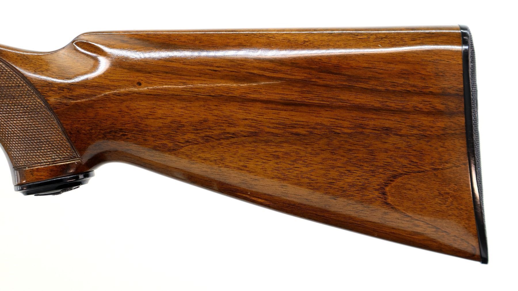 Main Description: Red fiber optic front bead, blued vent rib barrel, engraved alloy receiver, gold trigger. Two piece wood stocks, checkered forearm, pistol grip and black polymer butt plate, grip cap. Spare Barrel: Special Trap, 12 G X 2 3/4", 30", Bore is Excellent, Fixed Full Choke, Red fiber optic bead, polish blued finish, vent rib.