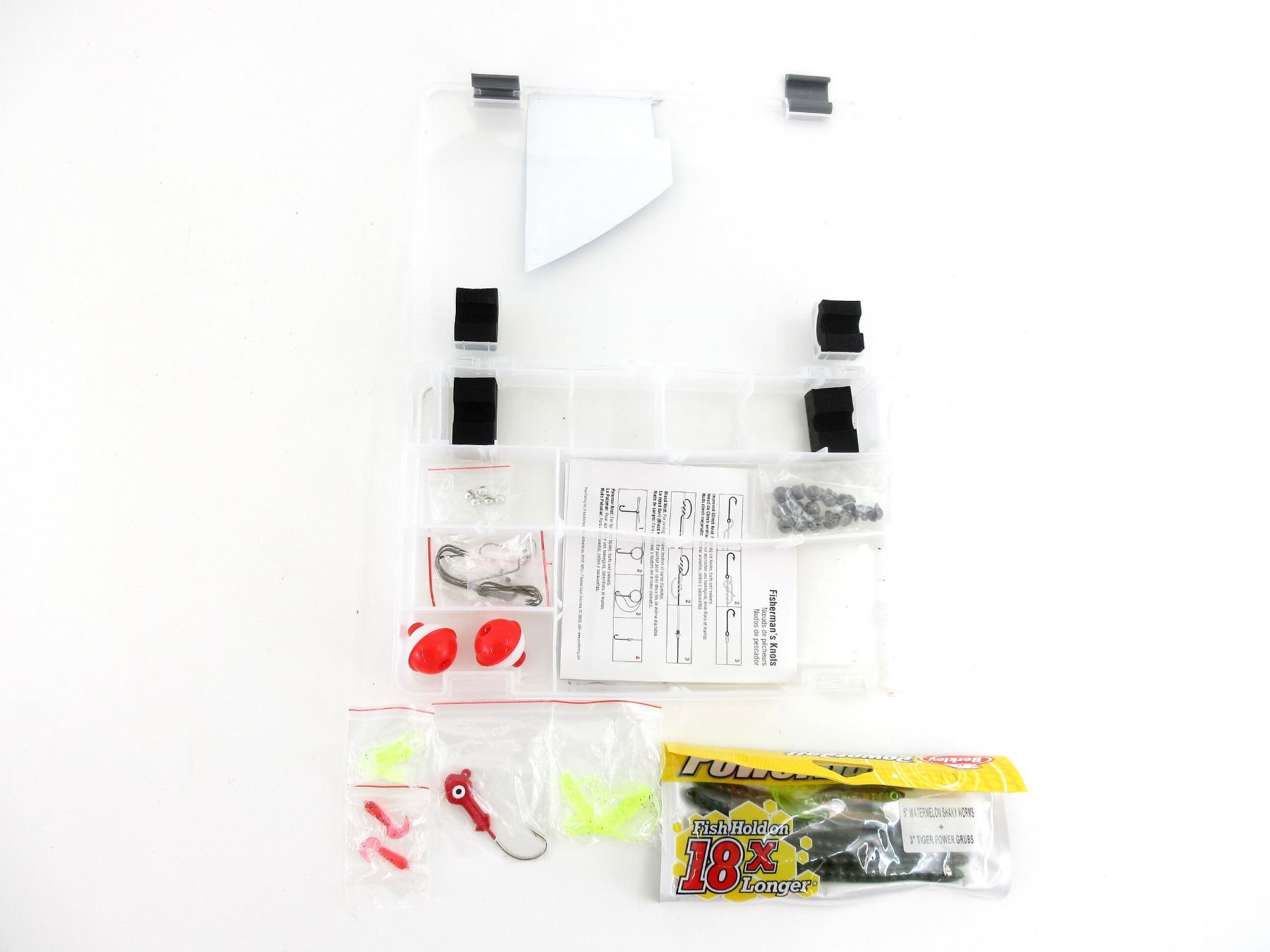 (1) POWERBAIT FISHING KIT WITH HOOKS, BOBBERS, ASSORTED LURES / POWERBAITS, KIT MAY NOT BE COMPLETE. SEE PHOTOS.