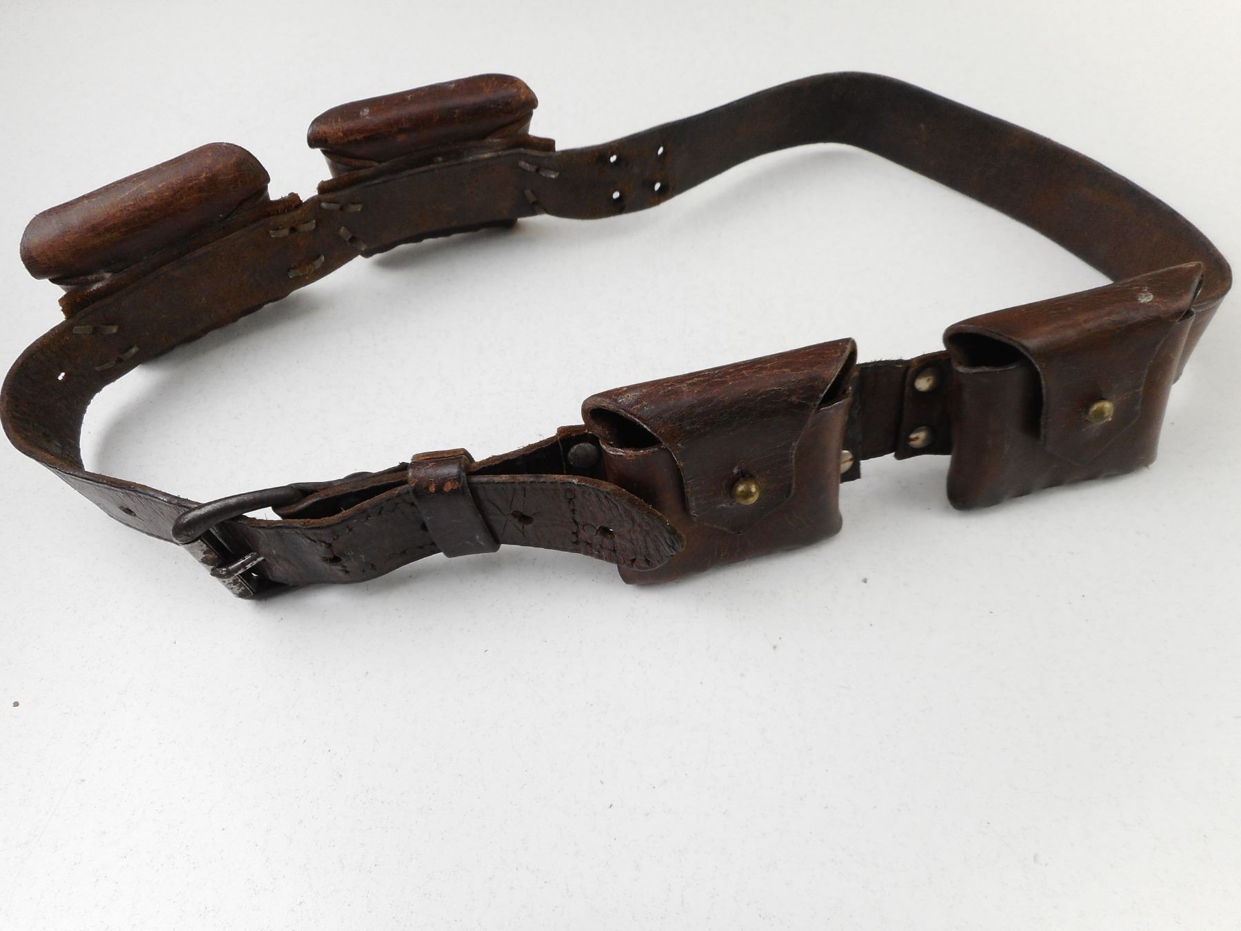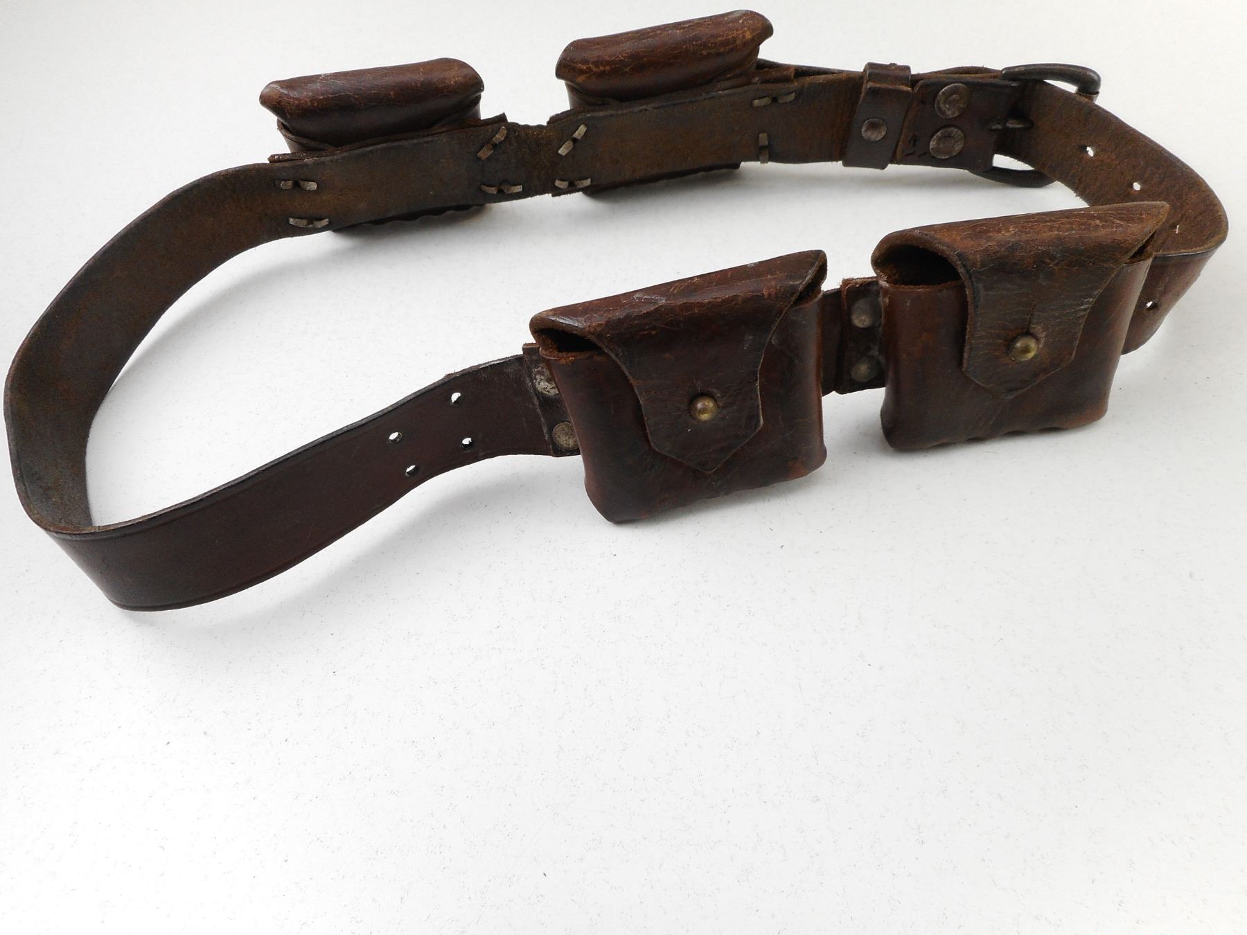 BOER MAUSER AMMUNITION BELT , NO VISIBLE MARKINGS. WITH FOUR 5 ROUND POUCHES FOR 7MM MAUSER AMMO. APPROX. LENGTH 38".