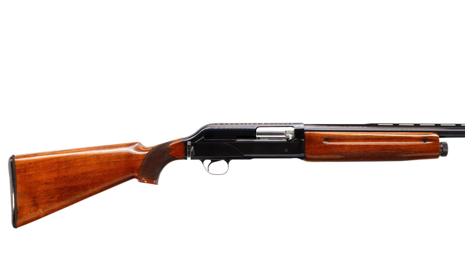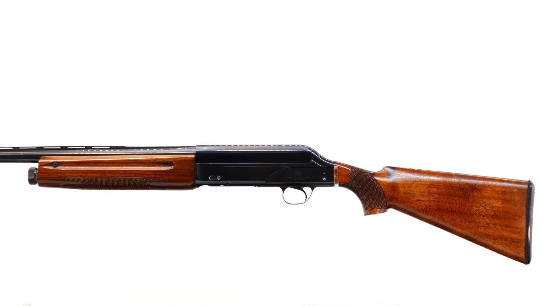 Main Description: Silver bead, blued finish, vent rib. Two piece wood stocks, finger grooved checkered forearm cracked, pistol grip, black polymer butt plate with foam spacer.