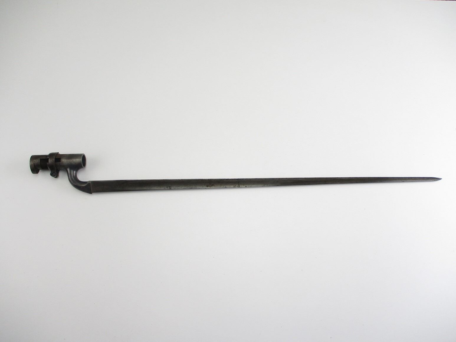 BRITISH 1895 PATTERN SOCKET BAYONET. (1) FITS MARTINI-HENRY .577-450 RIFLES, BLADE MARKED: "R" OVER BROAD ARROW OVER "WD" & CROWN OVER "E" OVER "35", NO SCABBARD, BLADE APPROX. 21.5" & OAL APPROX. 25".