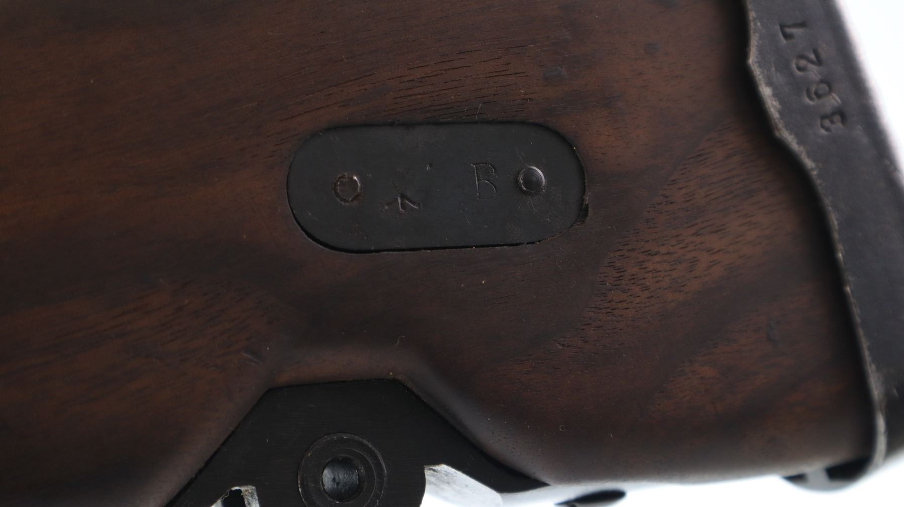 Main Description: 12-3 Converted Auto Prohibited Class. This item may be called in for a technical inspection, which will delay the transfer. If you don’t have this class of license and would like this item deactivated, it can be done for an additional $250.00 fee. Manufactured by Enfield 1939. Upper and Lower match. Barrel is numbered to match. Barrel locking lever is mismatched. Blade front sight with ears and ramp. Adjustable rear dial peep sight. Blued finish. Dust covers. Dove tail on left side of receiver. 3 piece wood stocks. MKII carrying handle. Pistol grip. Grooved steel butt plate. Missing shoulder rest. Unmarked brass stock disk. Swivel Studs. Bipod mounting points. Folding adjustable MKI Bipod. Stainless flash hider. There are additional accessories available for this item in our Militaria Session on October 10th, see Lots: 29094 Sling, 28287 Gunners Kit, 28288 Rare Lensatic Sight, 28289 Tripod, 28290 Transit Case, 20537 Mags + Carrier, 22315 Barrel.