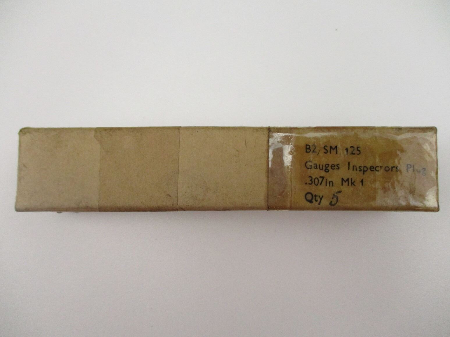 BRITISH LEE ENFIELD BORE GAUGES , (5) IN SEALED BOX. MARKED B2/SM/125, GAUGES INSPECTORS PLUG. .307IN MKI, TOTAL OF 5.
