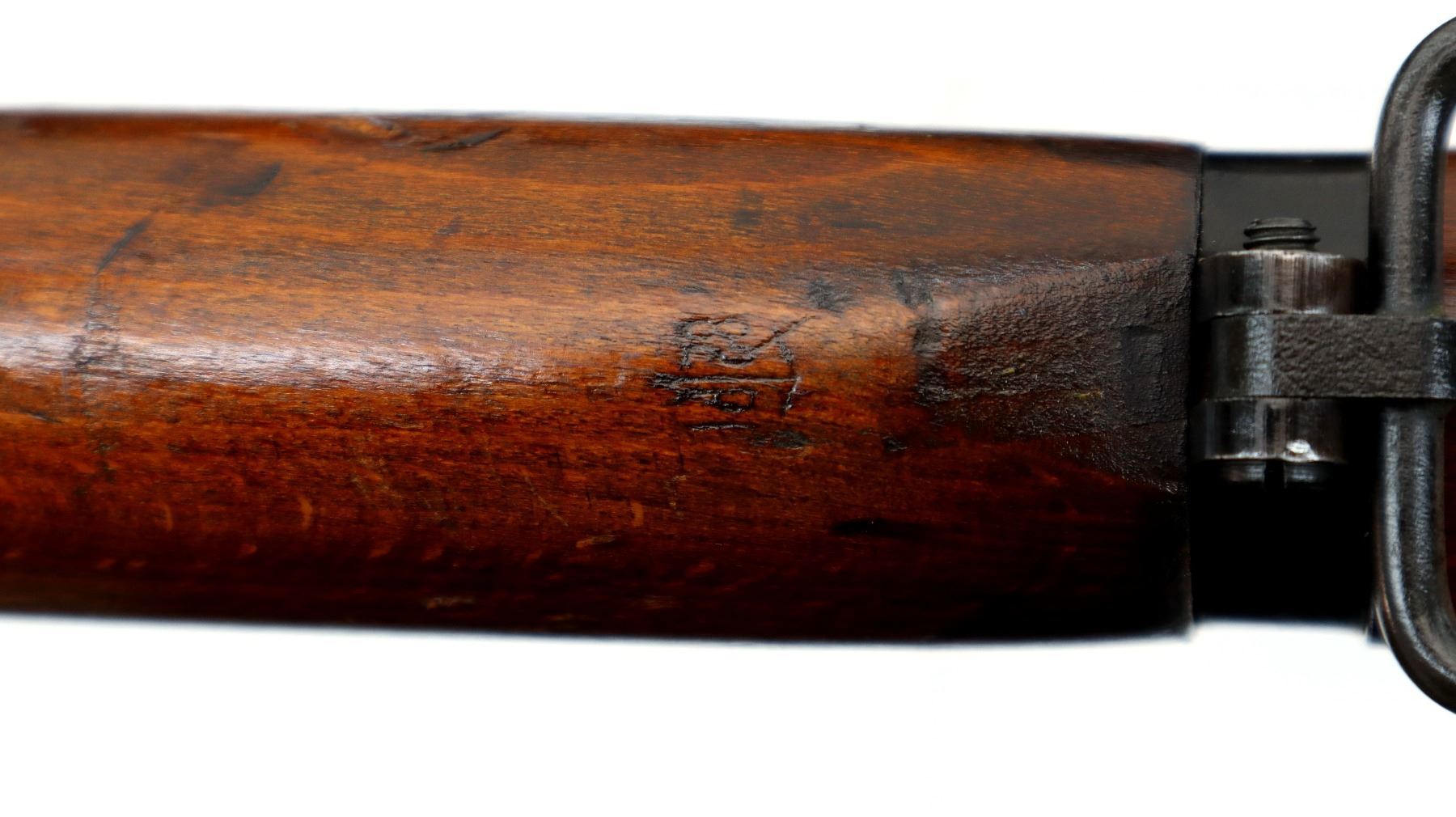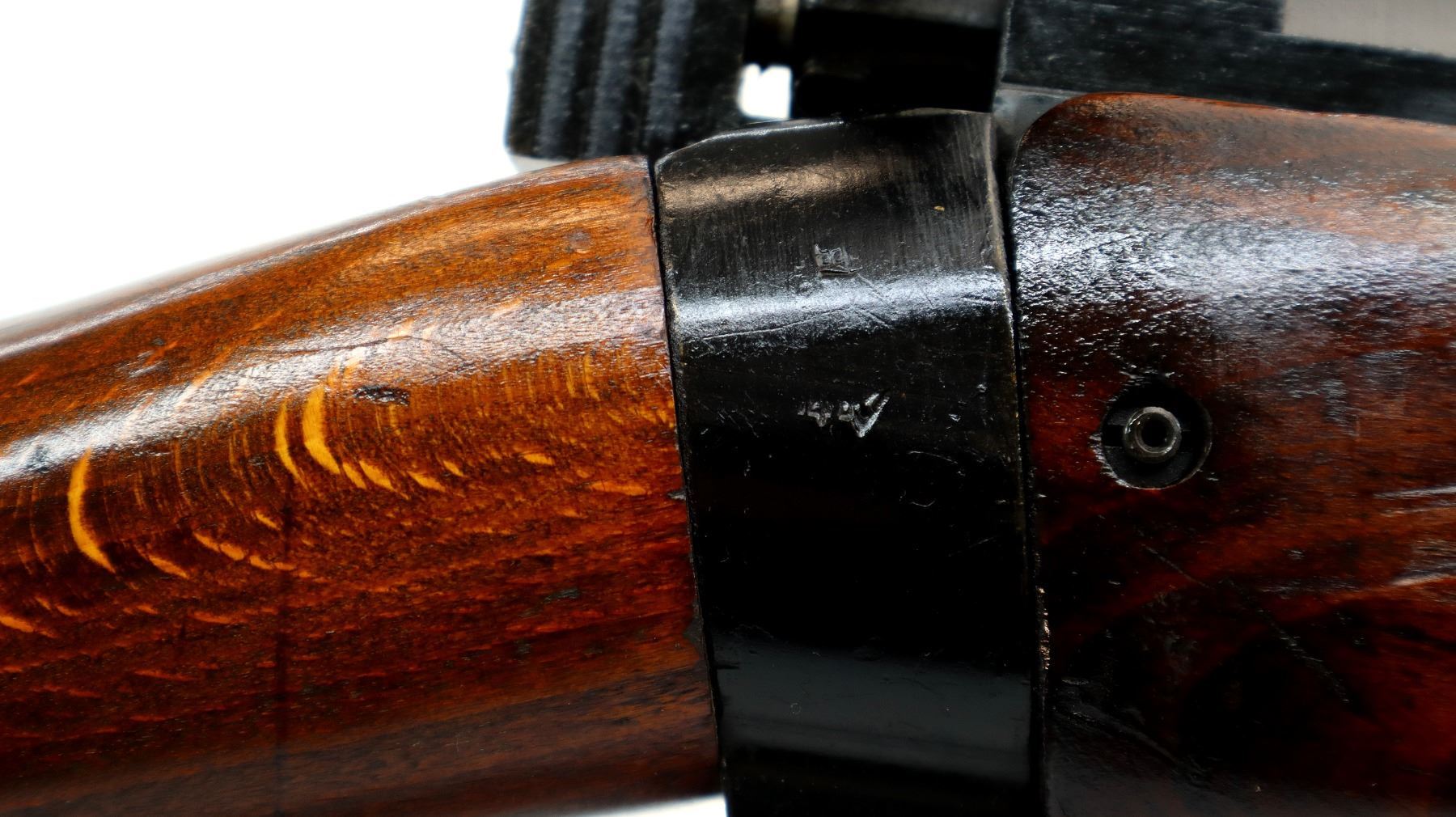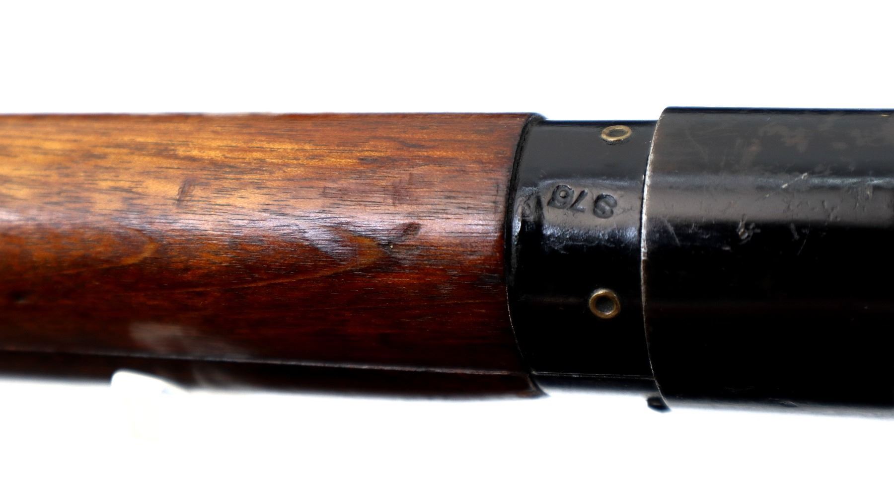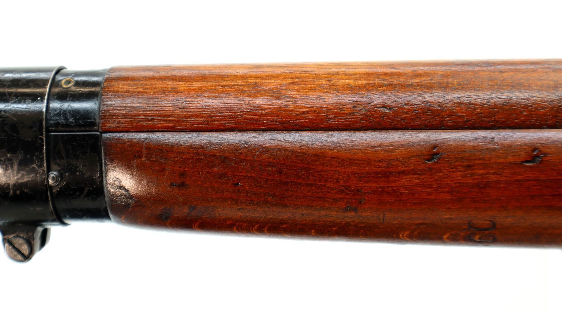 Main Description: Manufactured by Fazakerley 1/54, visible numbers match. Blade front sight with ears and ramp, adjustable milled rear peep sight, black painted metal finish. Four piece full military wood stocks, pistol grip, smooth brass butt plate with trap, sling swivels, bayonet lug.