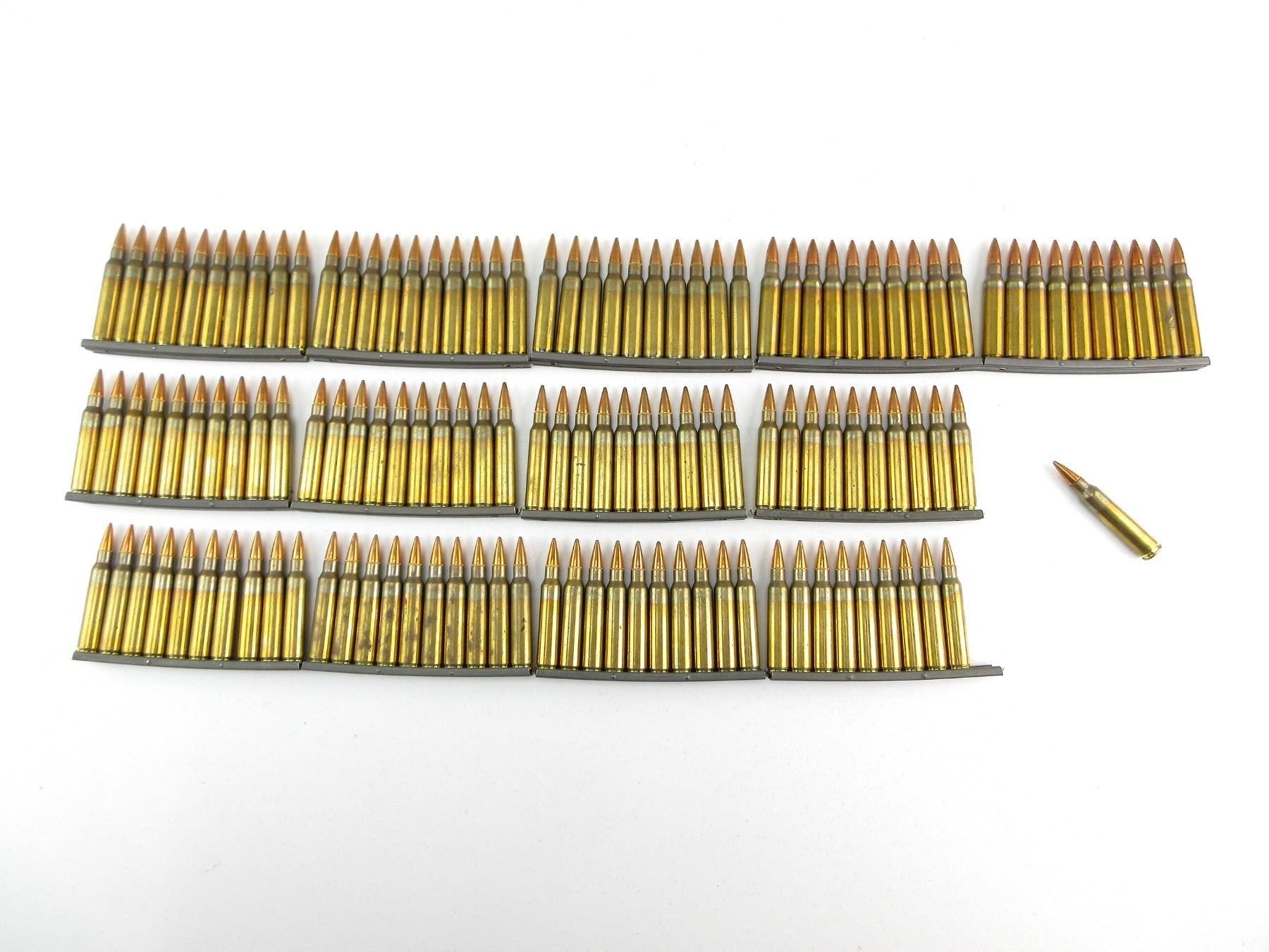 LOT INCLUDES; APPROX. (130) RNDS, FMJ, (13) STRIPPER CLIPS.