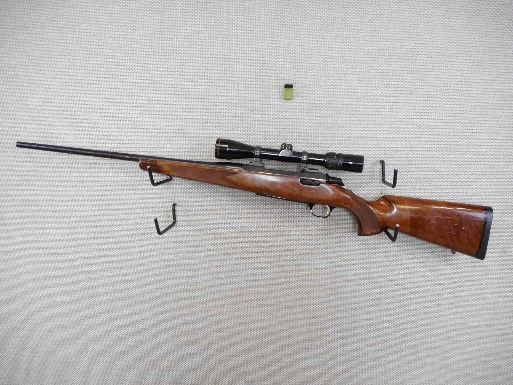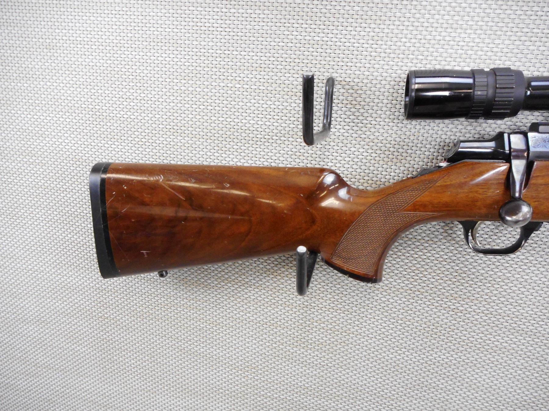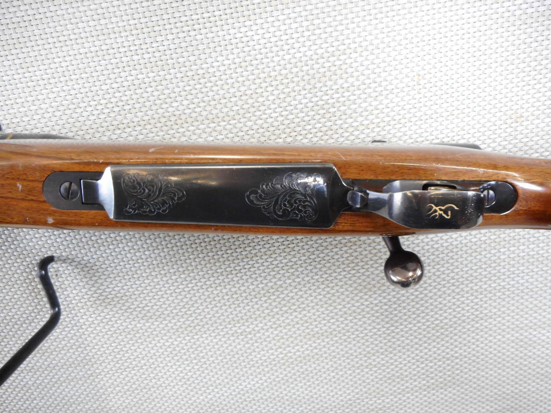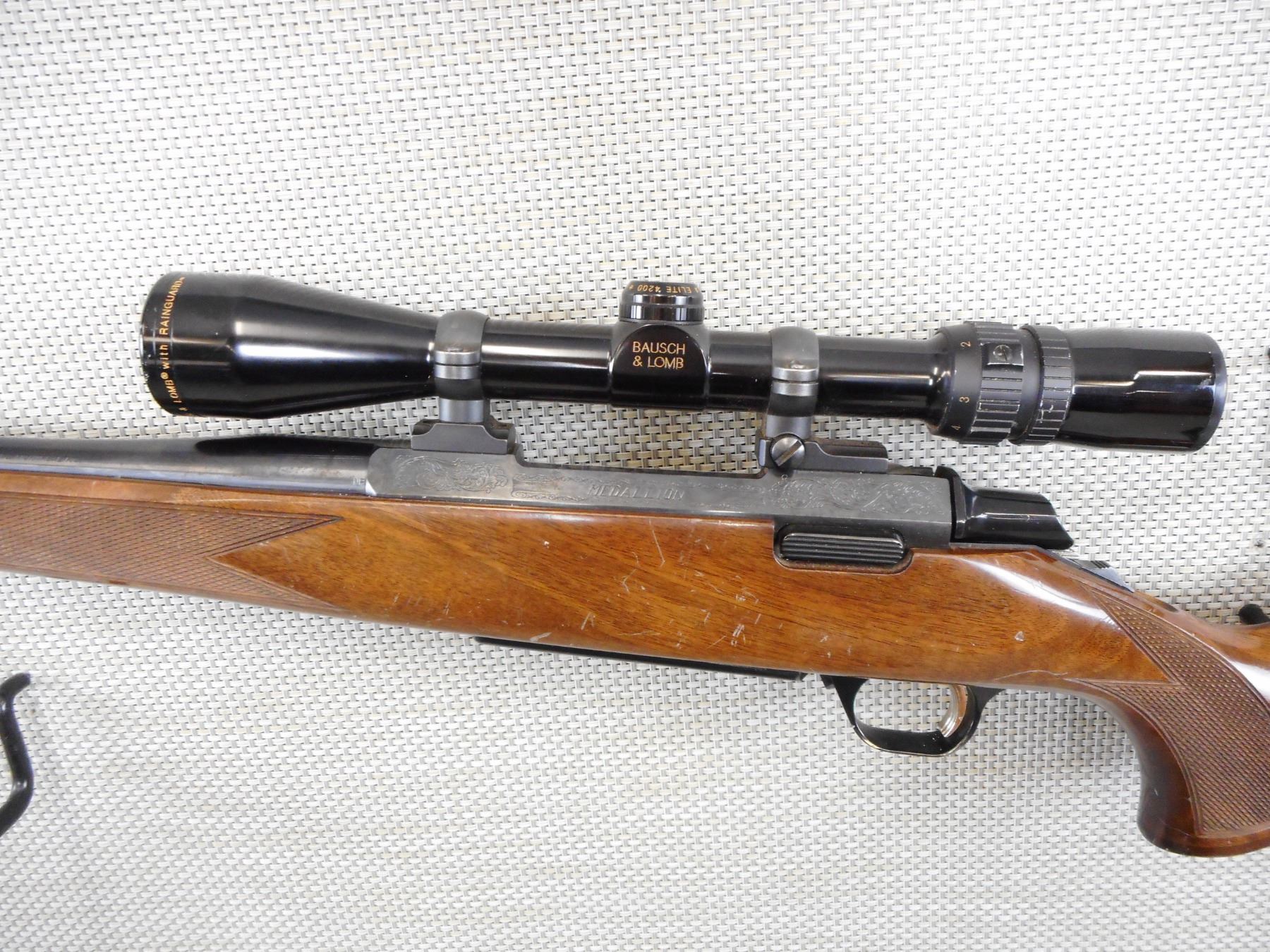 BROWNING , MODEL: A BOLT MEDALLION , CALIBER: 30-06 SPRG , COMES WITH MAGAZINE, EXCELLENT BORE, NO SIGHTS, BAUSH AND LOMBE 4200 SCOPE 1.5 - 6 X 32 WITH CLEAR VISIBILITY ON MOUNTS, HAS A ROSEWOOD TIPPED HARDWOOD STOCK THAT IS CHECKERED, SLING STUDS, BLACK RECOIL PAD, RECEIVER IS ENGRAVED, SHOW NUMEROUS HANDLING MARKS IN THE WOOD, SOME BLUEING WEAR , STOCK # 10204 , SERIAL # 04044NP317 , ACTION: BOLT ACTION RIFLE , BARREL LENGTH: 22" , CONDITION: 7/10 , CLASS: CLASS: CANADIAN NON RESTRICTED CLASS