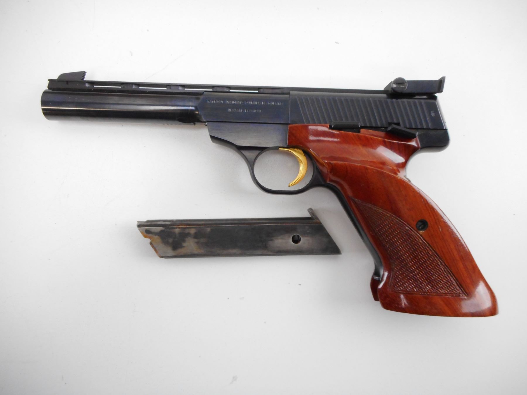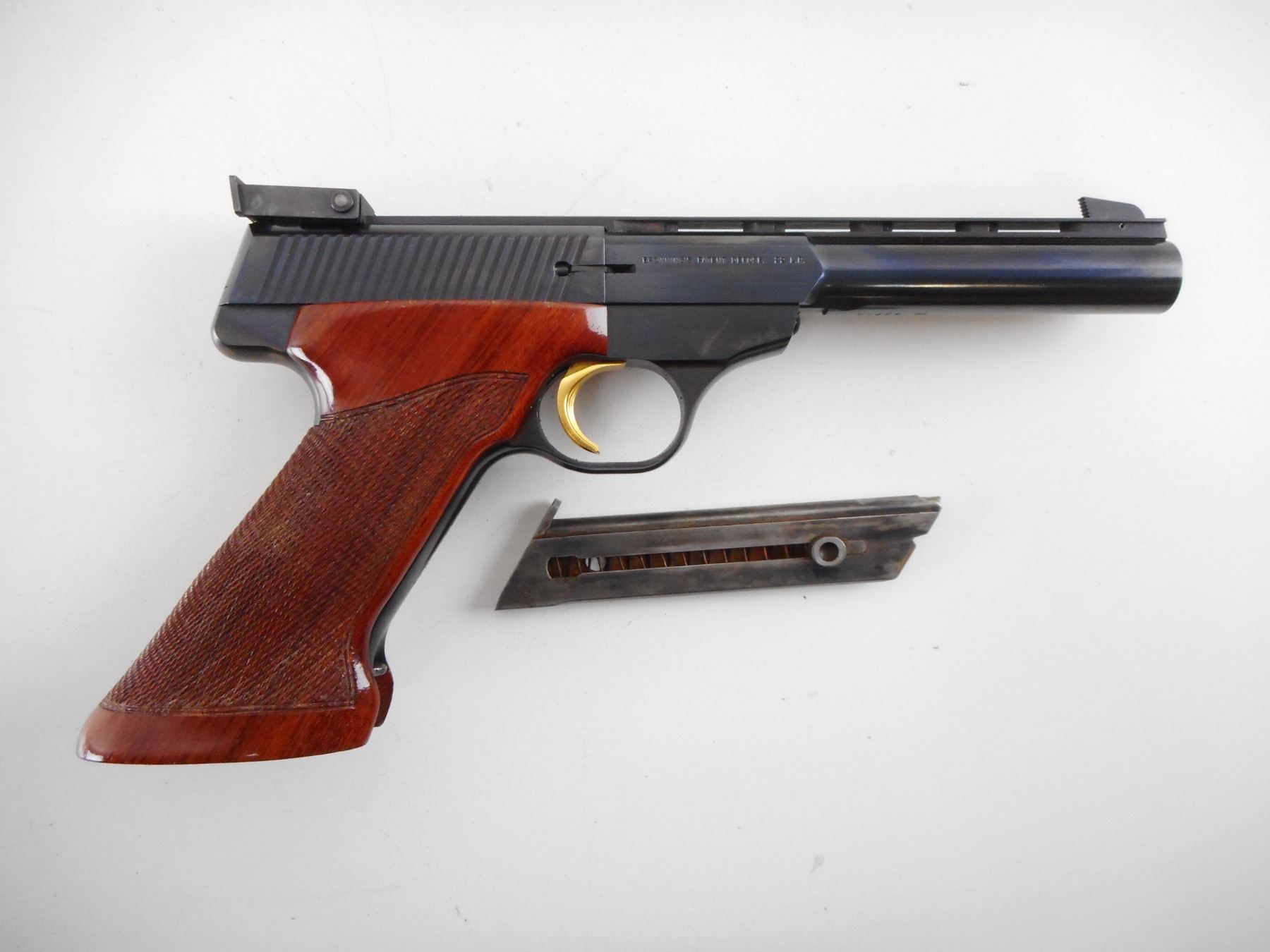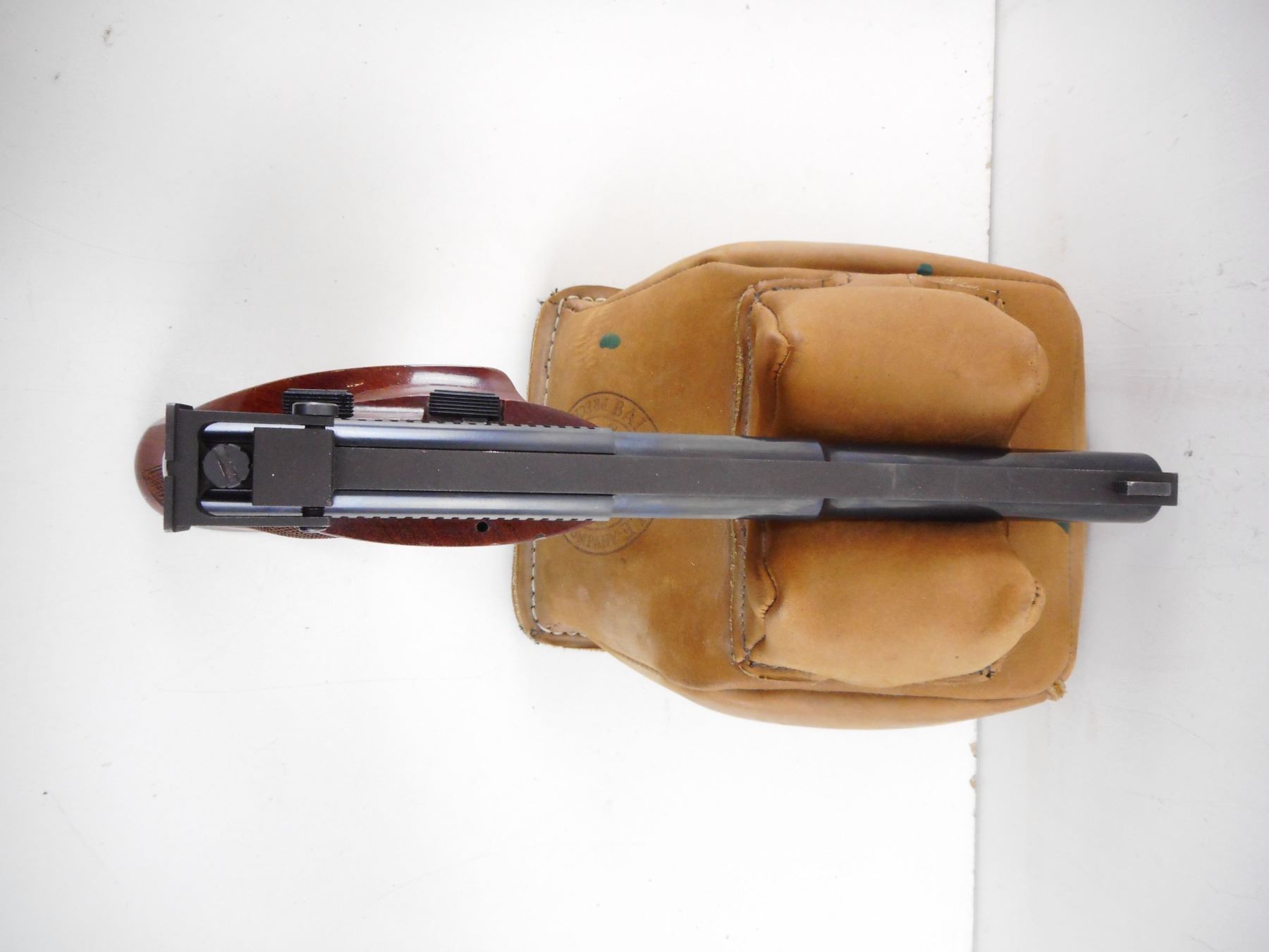 8/10 , BROWNING , MODEL: MEDALIST , CALIBER: 22 LR , COMES WITH 2 MAGAZINES , BORE IS VERY GOOD. BLADE FRONT AND ADJUSTABLE REAR SIGHT ON A VENTED RIB BARREL. CHECKERED TWO PIECE WOOD GRIPS WITH THUMB REST. GOLD TRIGGER. SHOWS SOME HANDLING MARKS. , ACTION: SEMI-AUTOMATIC , BARREL LENGTH: 152MM , SERIAL# 43780T71 , CLASS: CANADIAN RESTRICTED CLASS