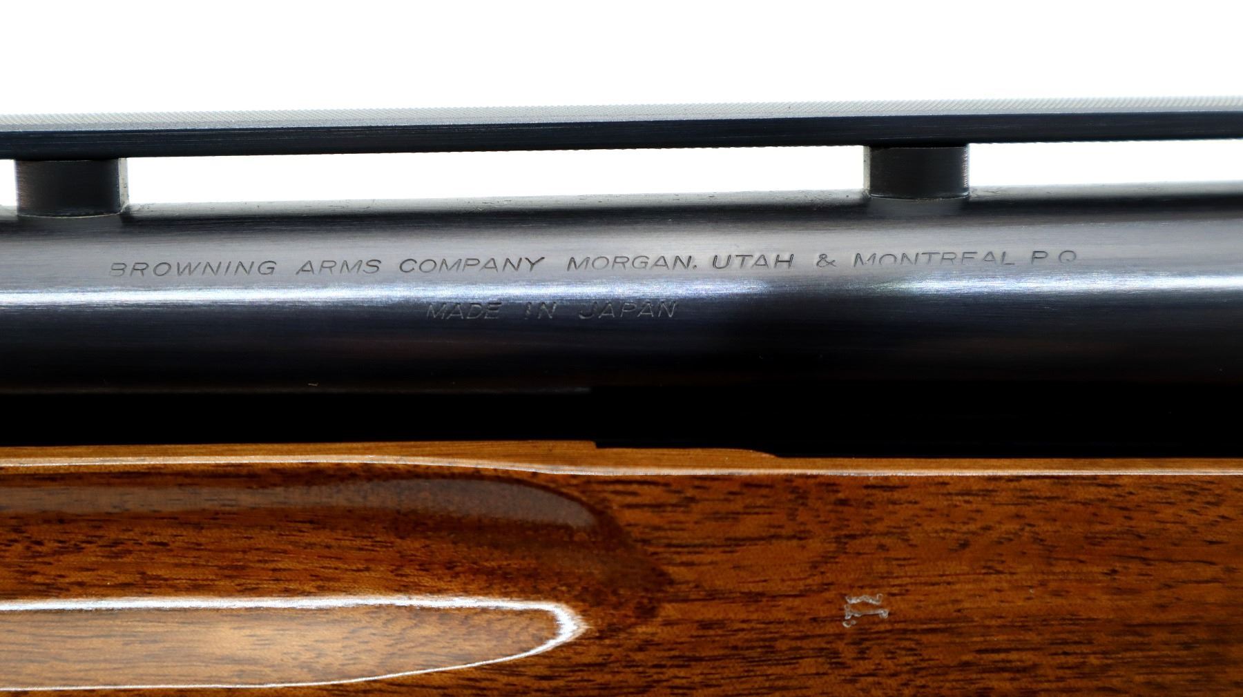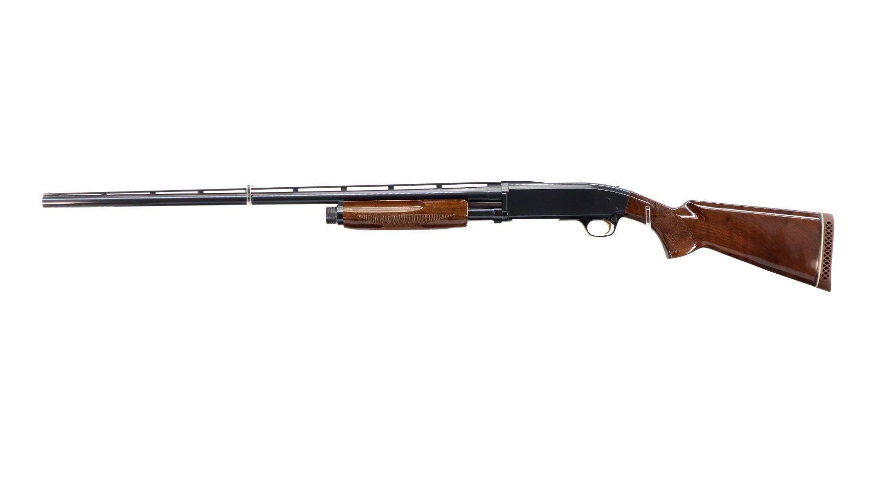 Main Description: Silver bead, Polish blued finish, vent rib, tang safety. Two piece wood stocks, finger grooved checkered forearm and pistol grip, brown vented rubber recoil pad, gold trigger.