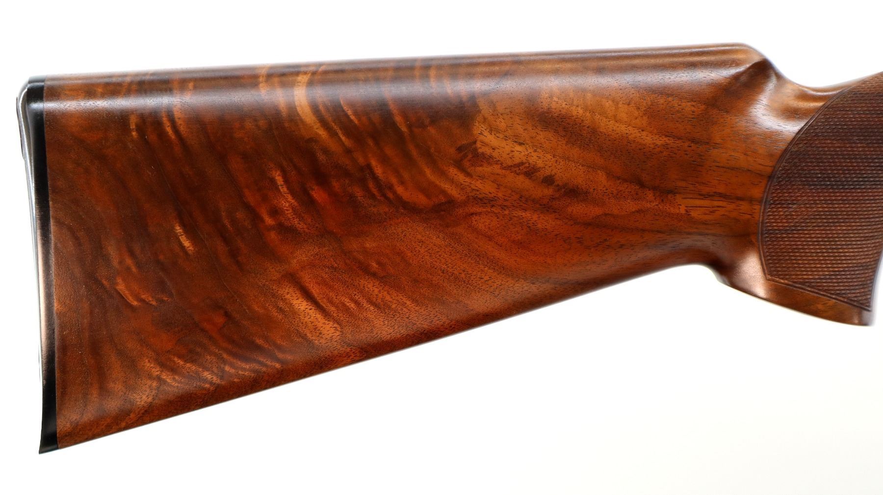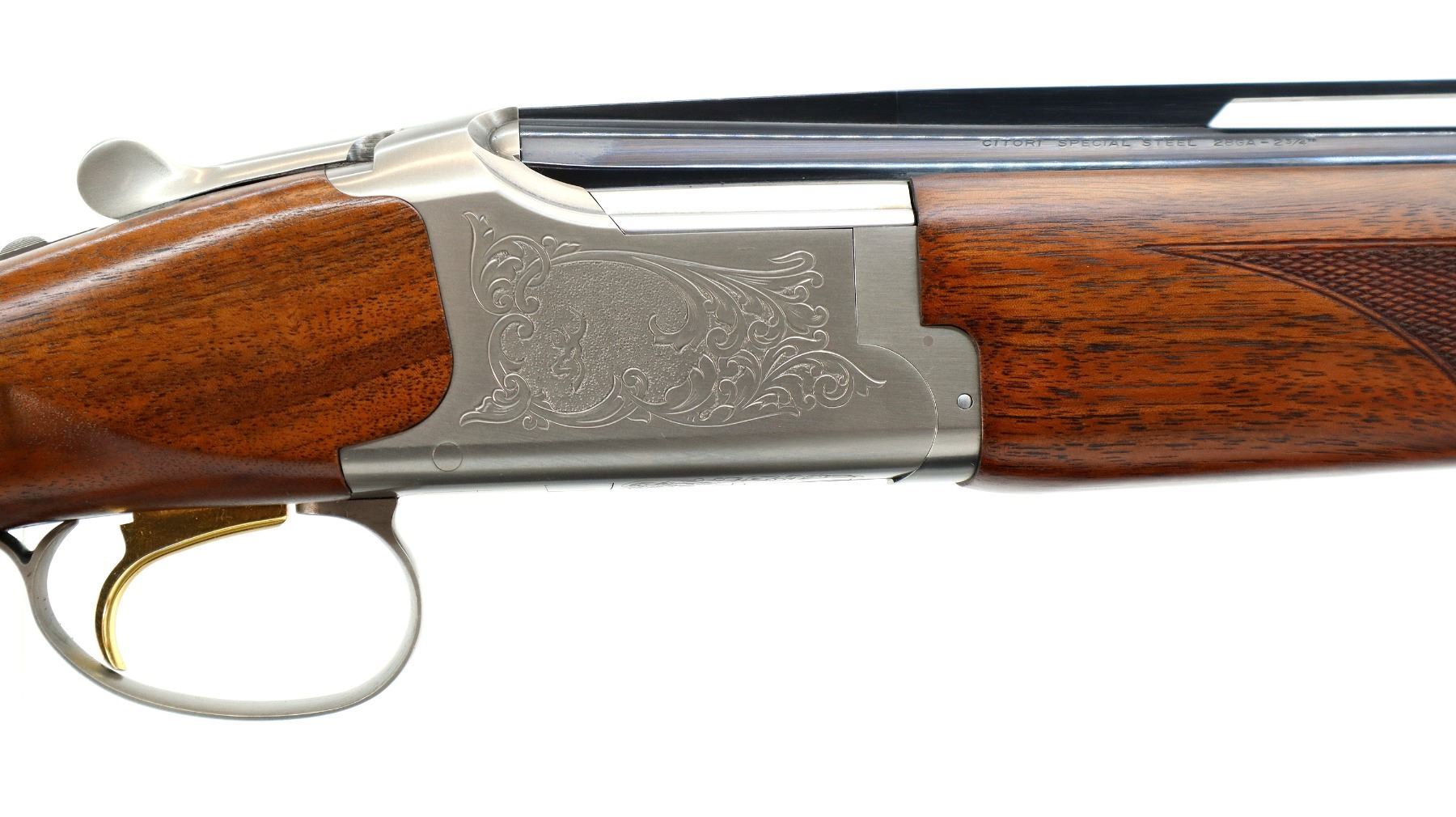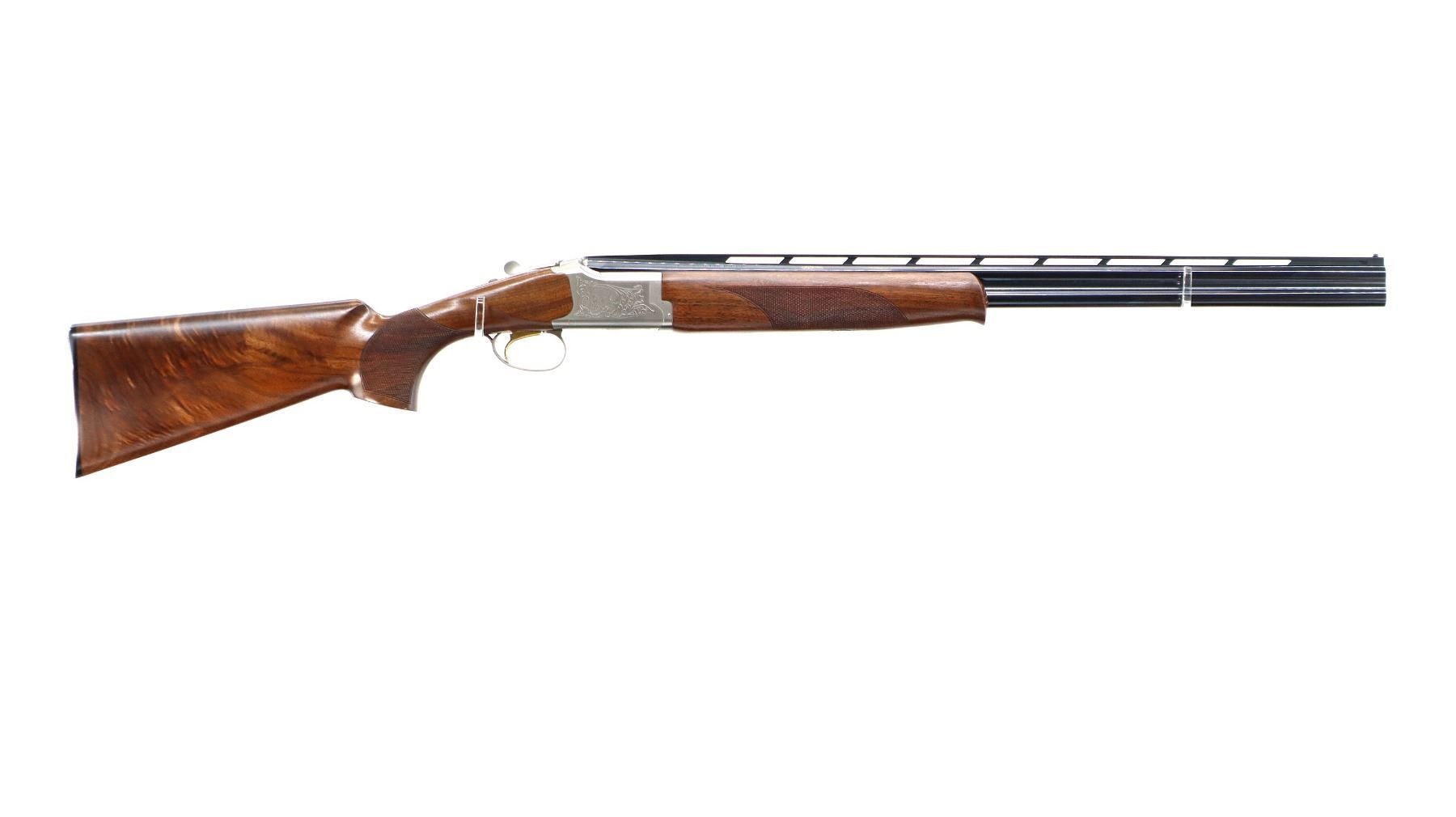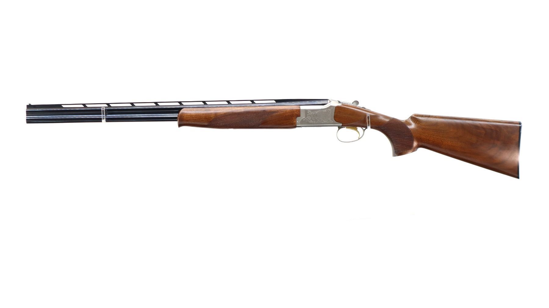Main Description: May have been test fired in factory. White front and Mid rib beads, polish blued barrels with raised vent rib, engraved silver receiver, manual selective safety, ejectors, single gold inertia trigger. Two piece Satin finish wood stocks, checkered forearm and pistol grip, black polymer Browning logo butt plate.