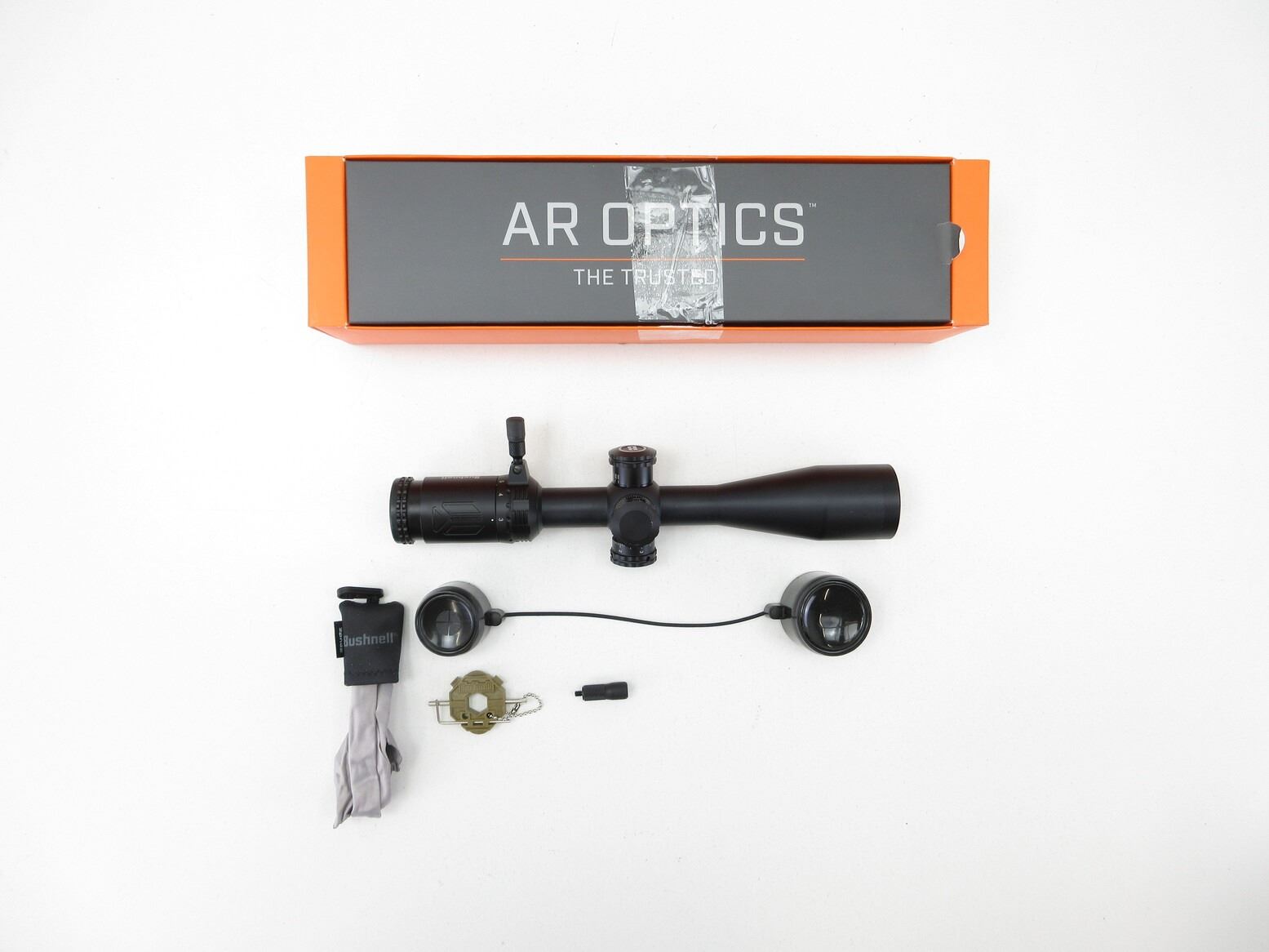 BUSHNELL AR OPTICS 3-12X 40MM RIFLE SCOPE. (1) CLEAR OPTICS, DROP ZONE - 223 RETICLE, 1" TUBE DIAMETER, WORKING MAGNIFICATION RING, WORKING WINDAGE & ELEVATION ADJUSTMENT KNOBS, MAGAZINE BODY SHOWS WEAR & TEAR / USE MARKS, WITH BIKINI STYLE LENS COVERS, ETC. SEE PHOTOS.