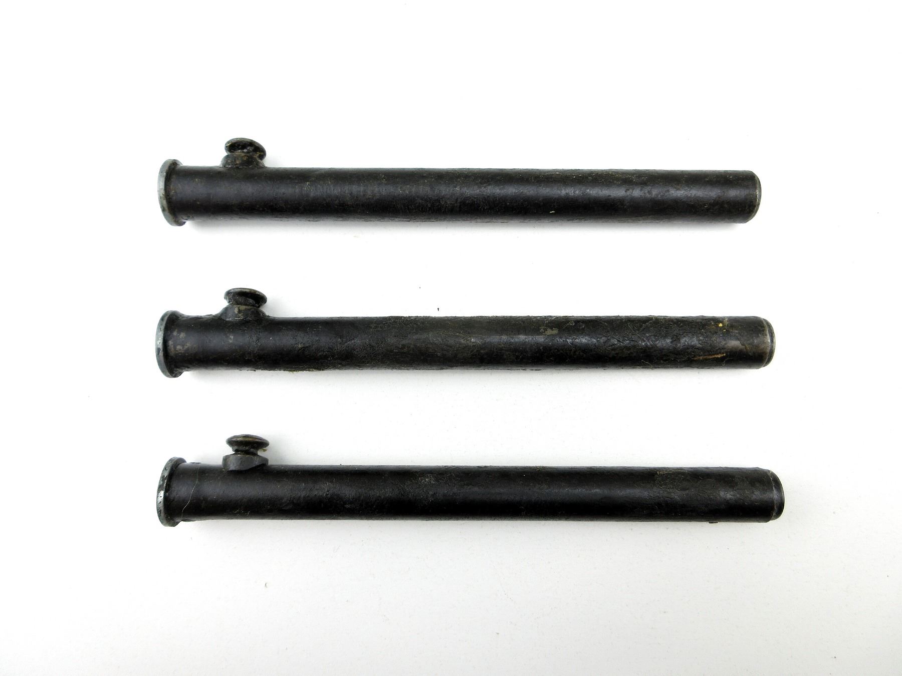 LOT INCLUDES; (3) BLACK PAINTED LIGHTWEIGHT STEEL NO.4 MKII SPIKE BAYONET SCABBARDS (NO BAYONETS), TWO WITH THROAT MARKED: BROAD ARROW & "W" IN A CIRCLE, ONE THROAT MARKED WITH BROAD ARROW, ALL THREE BOTTOM MARKED: "S191 (FRANCO-BRITISH ELECTRICAL COMPANY), OALS APPROX. 8 3/8" & 8.5". SEE PHOTOS. *COVERED IN GREASE*