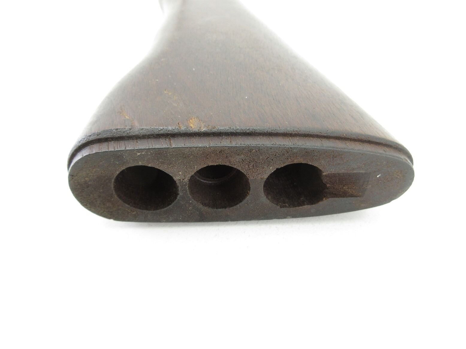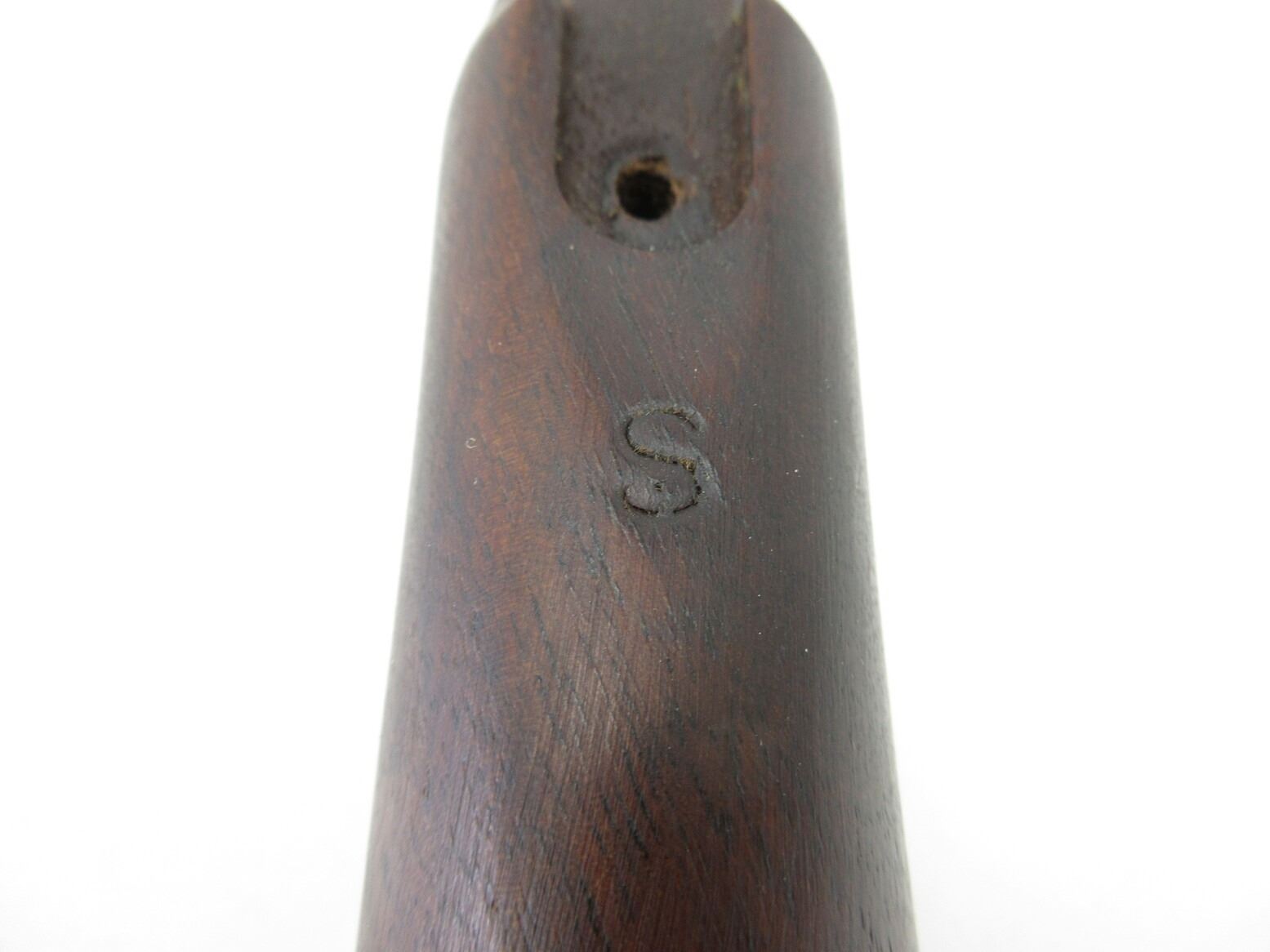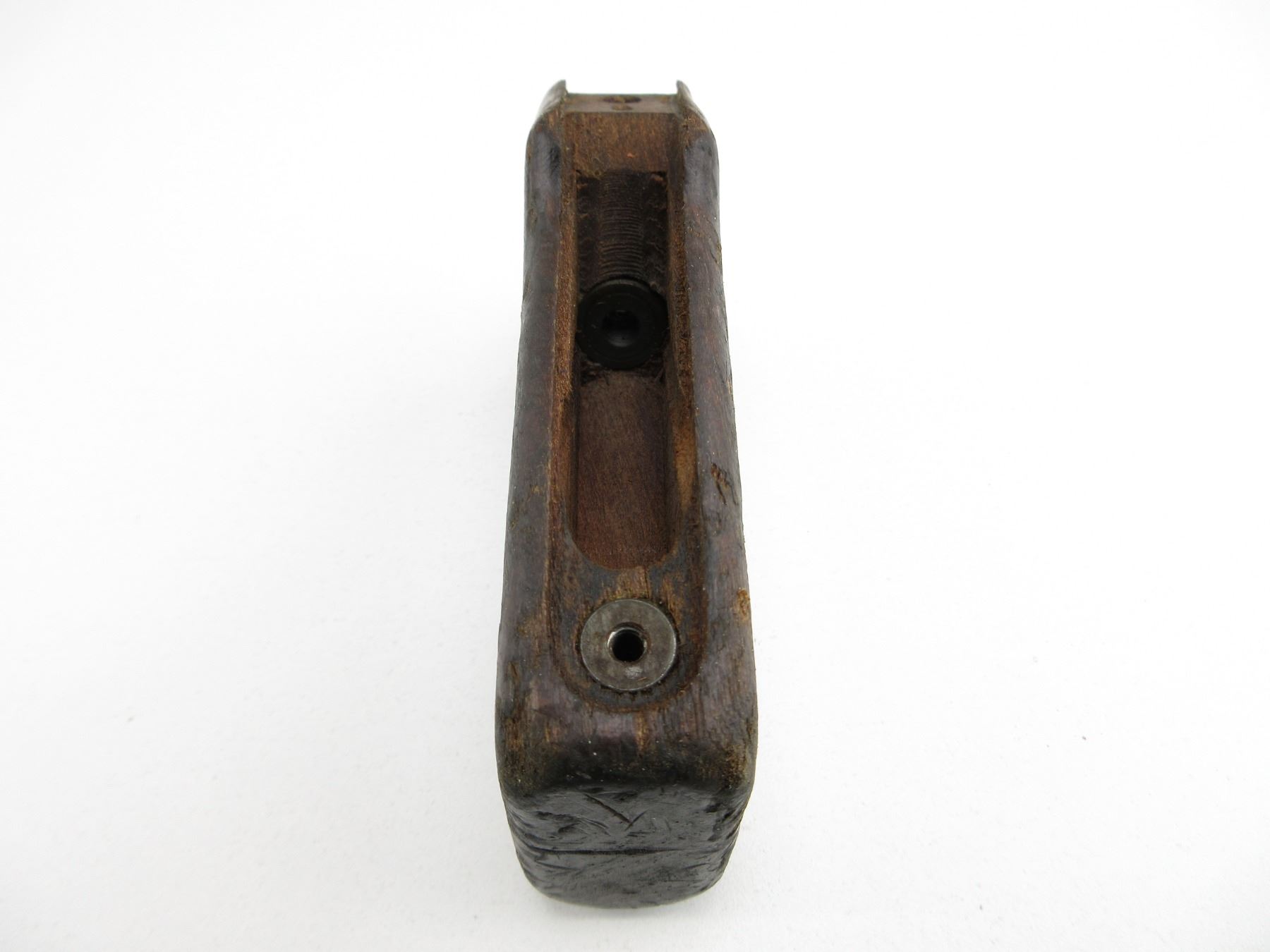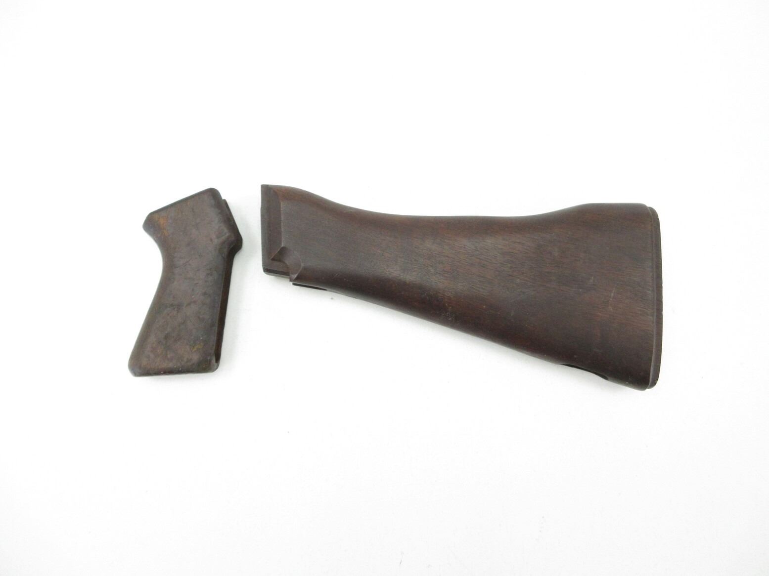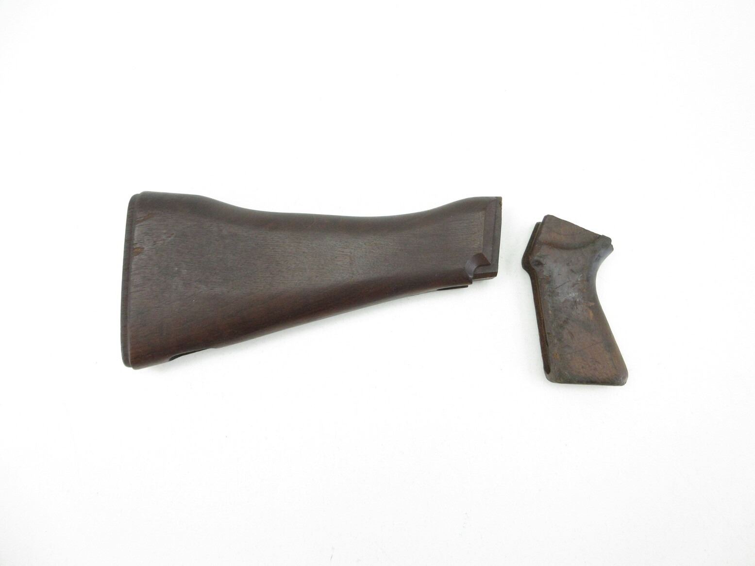 CANADIAN FN C1 BUTT STOCK AND PISTOL GRIP LOT. FITS 7.62N SEMI-AUTO RIFLES, LOT INCLUDES; (1) BUTT STOCK, WOOD CONSTRUCTION, MARKED: "S", MISSING BUTT PLATE, OAL APPROX. 9.75", (1) PISTOL GRIP, WOOD CONSTRUCTION, SHOWS WEAR & TEAR, UNMARKED, OAL APPROX. 4.5". MAY REQUIRE FITTING. SEE PHOTOS.