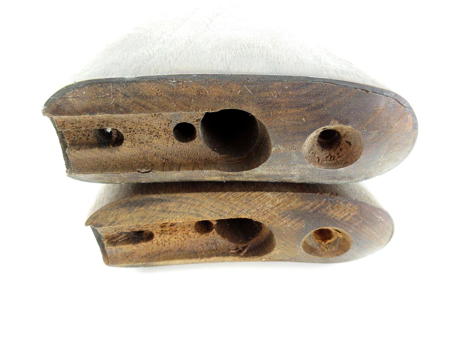 LOT INCLUDES; (2) BUTT STOCKS, WOOD CONSTRUCTION, ONE MARKED: "LB ( LONG BRANCH), 32", WITH C-BROAD ARROW, ONE MARKED: "LB ( LONG BRANCH), 34", WITH C-BROAD ARROW & FAINT / UNCLEAR MARKINGS, OAL APPROX. 13.5". MAY REQUIRE FITTING. SEE PHOTOS.