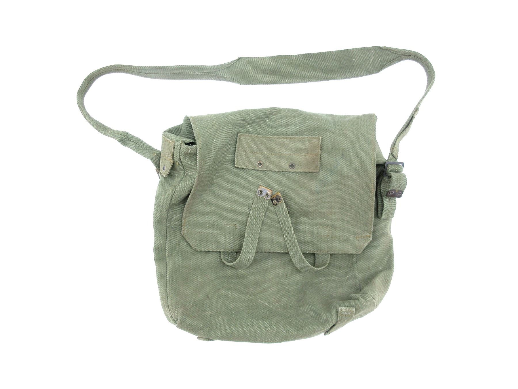 (1) GREEN CANVAS WEB LARGE PACK WITH SHOULDER STRAP, VARIOUS FAINT / UN-CLEAR MARKINGS ON STRAP WITH MAPLE LEAF PROOF MARK, MAPLE LEAF PROOF MARKS ON FLAP, VARIOUS FAINT HAND-WRITTEN MARKINGS. SEE PHOTOS.