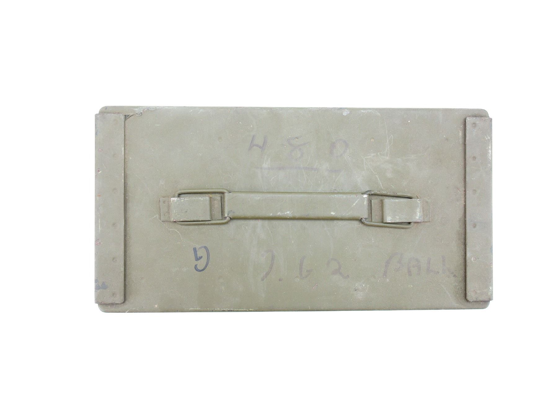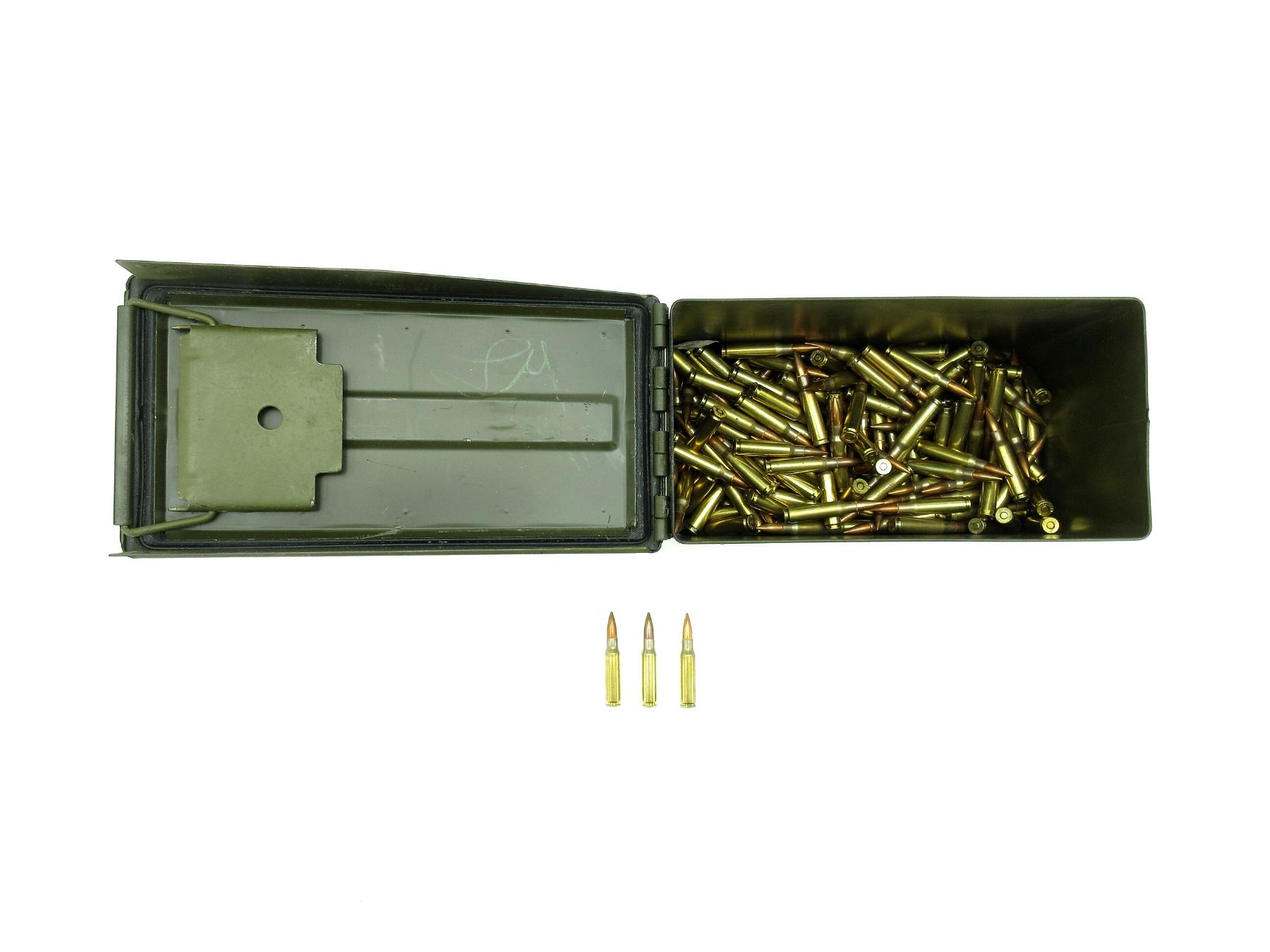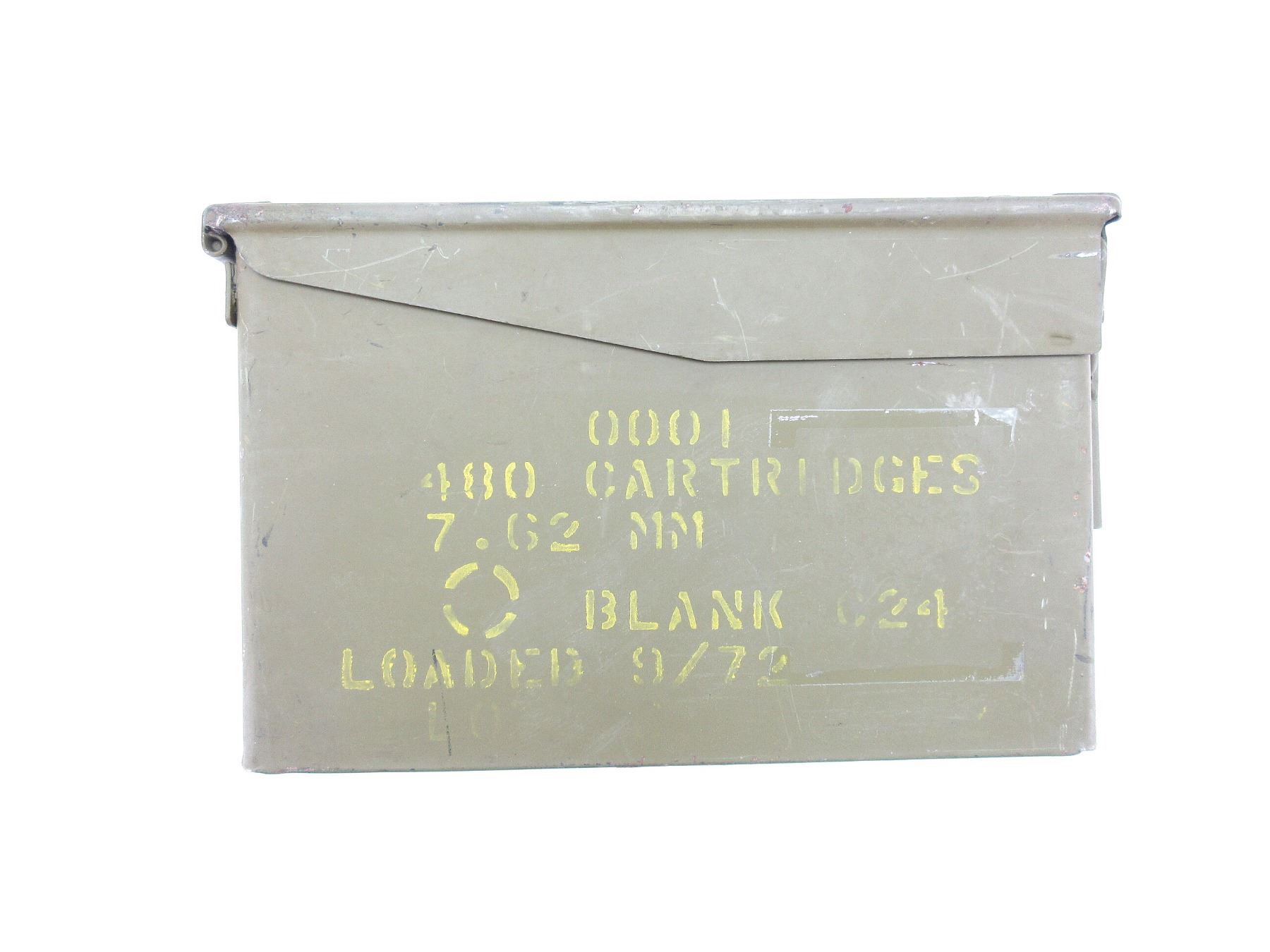 LOT INCLUDES; APPROX. (182) RNDS, FMJ, (5) BLANKS (1) METAL AMMO CAN, APPROX. DIM 12"X6"X7".