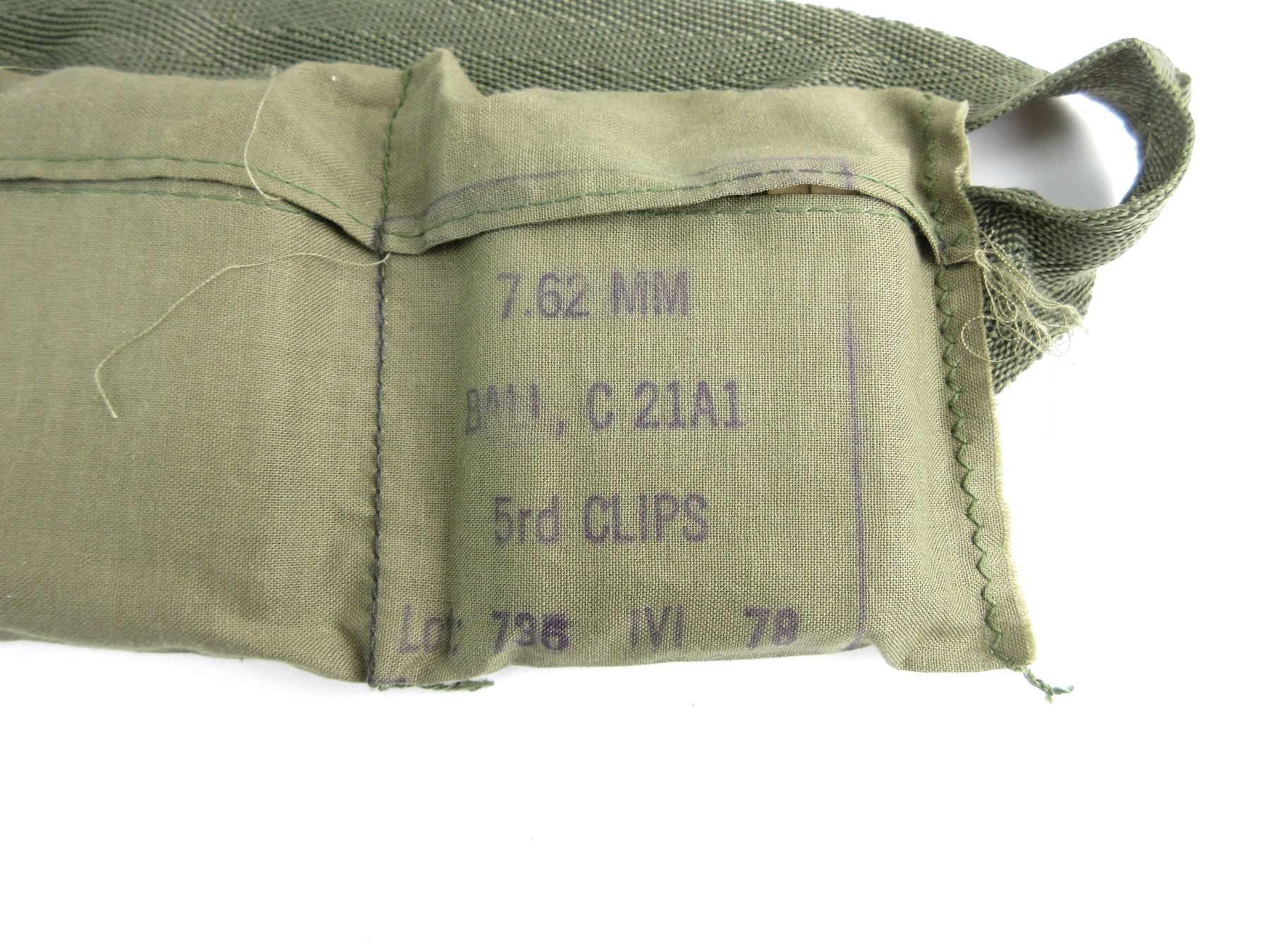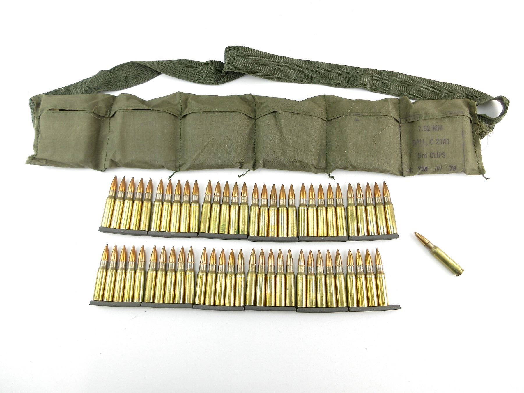 LOT INCLUDES; APPROX. (60) RNDS, FMJ, STRIPPER CLIPS, WITH GREEN BANDOLIER, MARKED C 21A1 LOT 735 IVI 78.