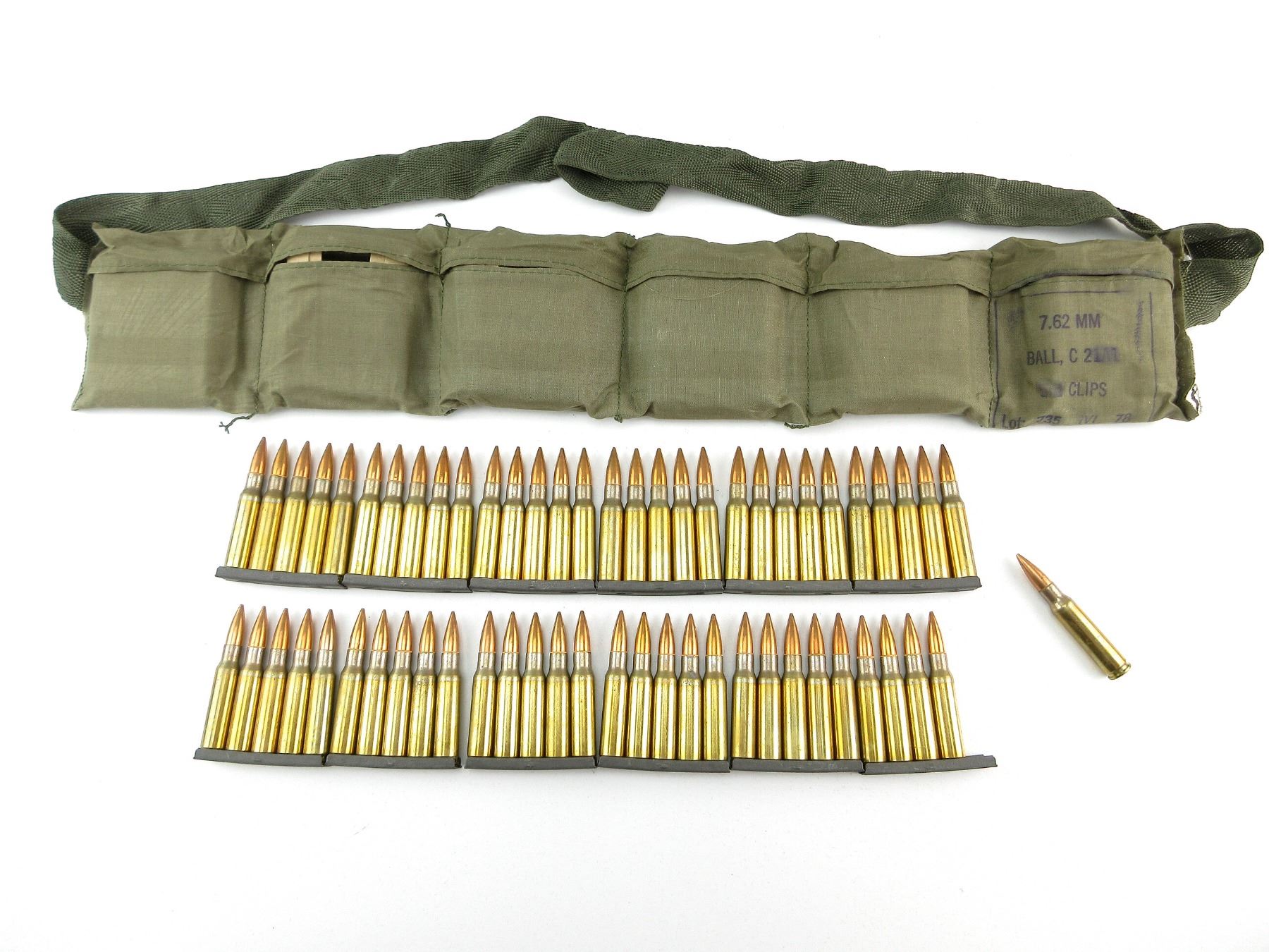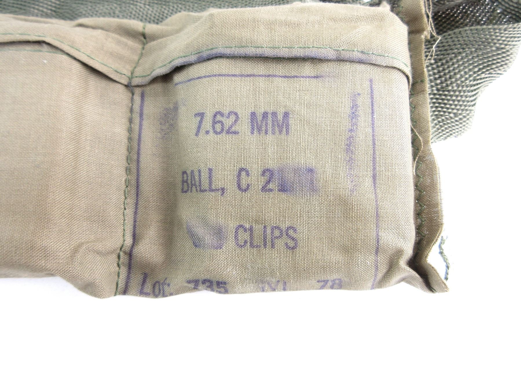 LOT INCLUDES; APPROX. (60) RNDS, FMJ, STRIPPER CLIPS, WITH GREEN BANDOLIER, MARKED C 21A1 LOT 735 IVI 78.