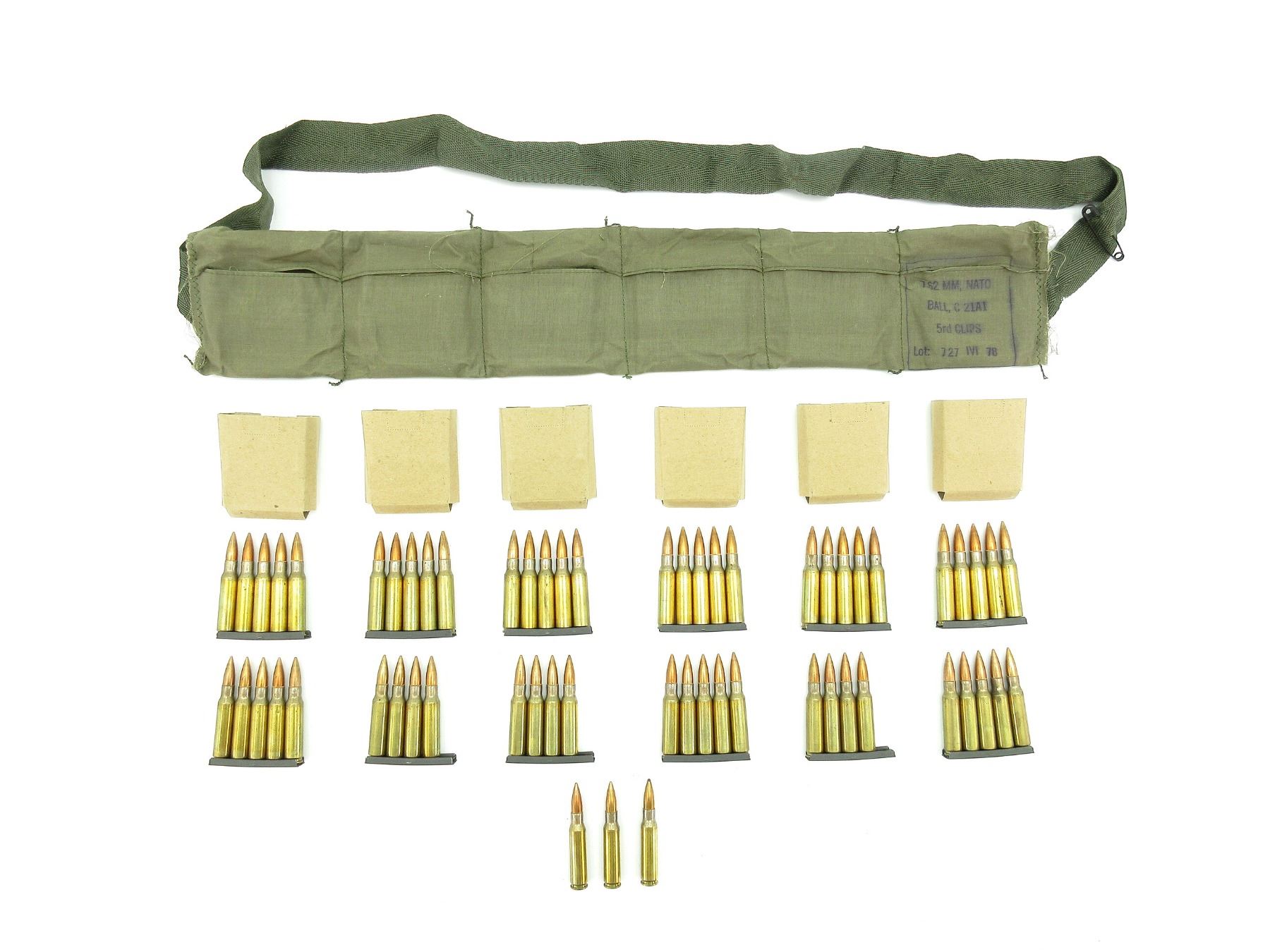 LOT INCLUDES; APPROX. (60) RNDS, BALL, C 21A1, LOT 727 IVI 78, (10) STRIPPER CLIPS, (1) BANDOLIER.