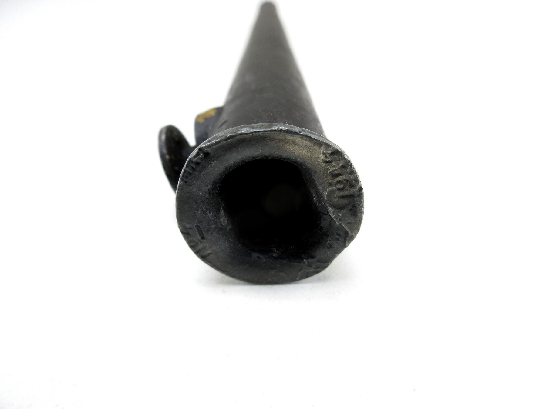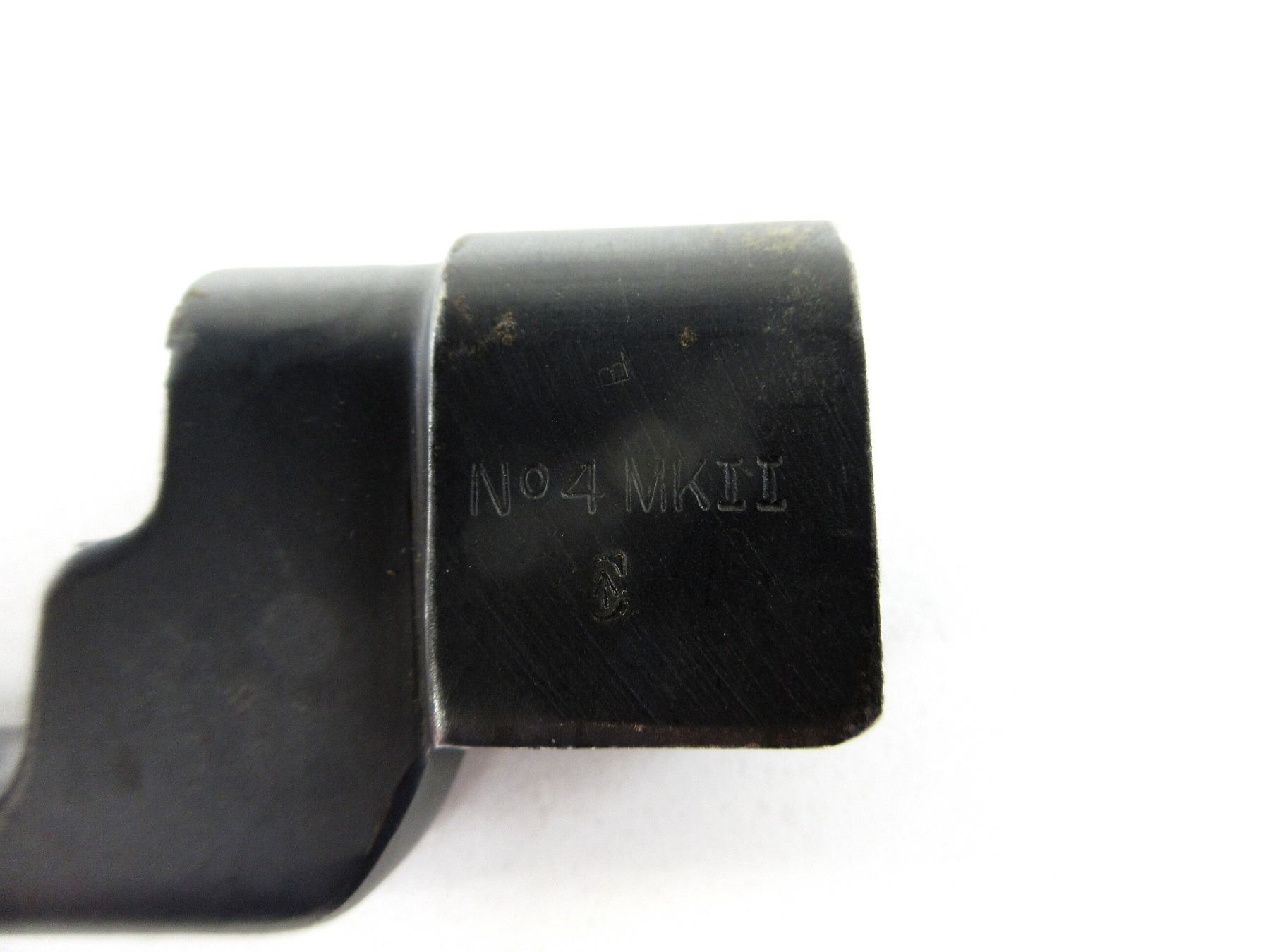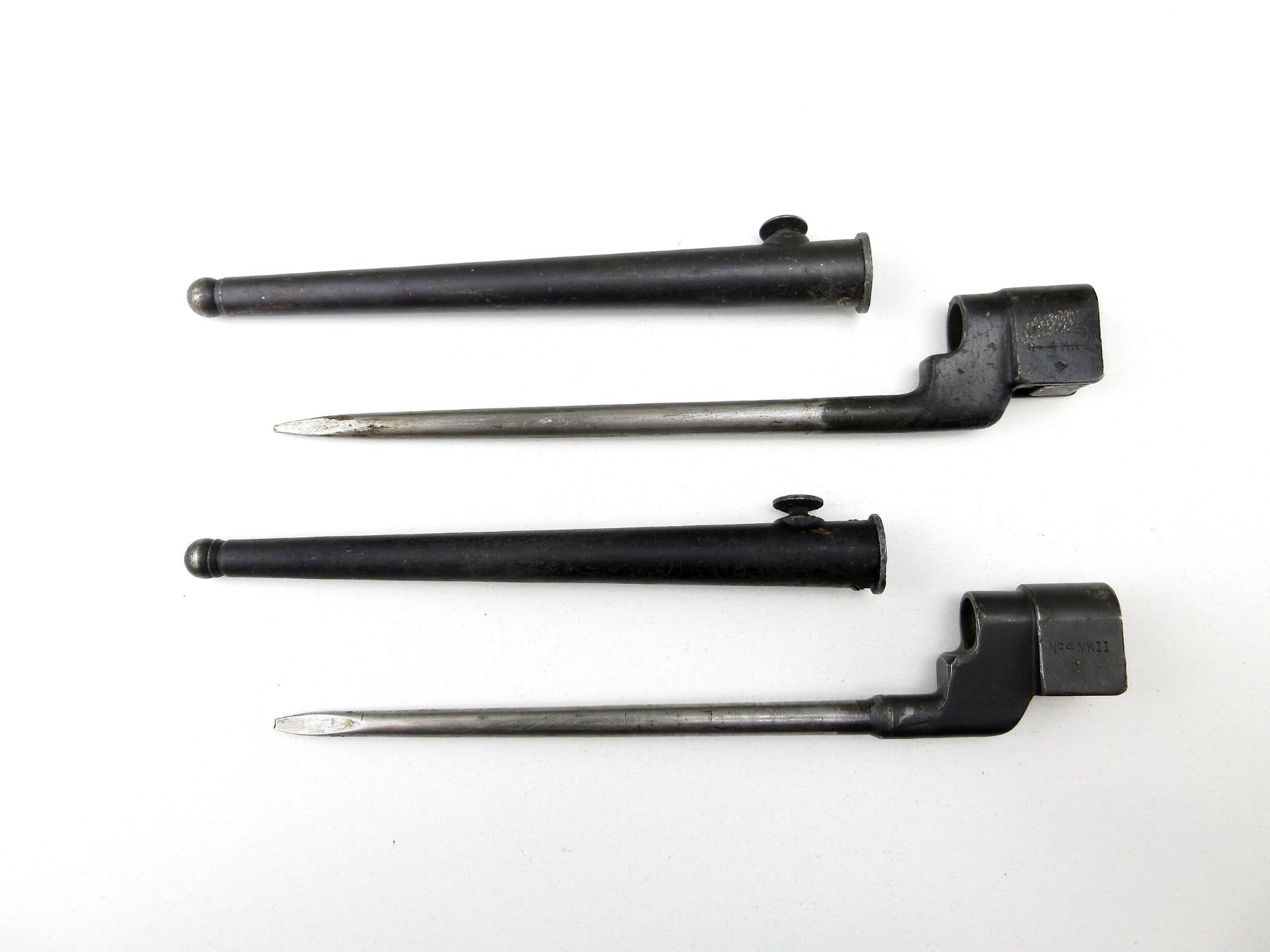 LOT INCLUDES; (1) FITS LEE ENFIELD NO.4 MKI & MKII SERIES RIFLES, SOCKET MARKED: "NO4 MK2", "NO 4 MK II" CROSSED OUT, "LB (LONG BRANCH)" & "5", ARROW, "K", METAL MK. I SCABBARD, NO VISIBLE MARKINGS, BLADE APPROX. 8", OAL APPROX. 9 7/8" & (1) FITS LEE ENFIELD NO.4 MKI & MKII SERIES RIFLES, SOCKET MARKED: "NO4 MKII" WITH C-BROAD ARROW, METAL MK. I SCABBARD, THROAT MARKED: "NO4 MKI" & "1944", BLADE APPROX. 7 7/8" & OAL APPROX. 9.75". SEE PHOTOS.