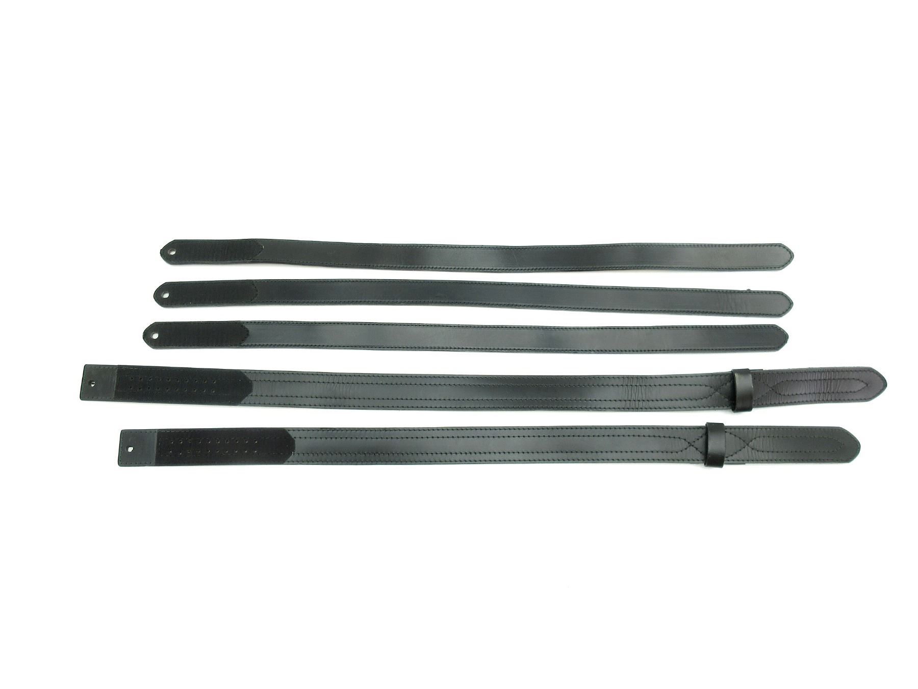 LOT INCLUDES; (2) 2-SECTION BLACK LEATHER SERVICE BELTS WITH ONE EXTRA SECTION OF BELT, ONE SECTION OF BELT MARKED: "200364", "R.NICHOLLS" & VARIOUS OTHER MARKINGS, OTHER SECTION OF BELT MARKED: "11235, ARMOR, 70, 28, MADE IN CANADA", ONE SECTION OF BELTS OALS APPROX. 40.25 & 44.25" & OTHER SECTION OF BELTS OALS APPROX. 36.25". SEE PHOTOS. **PLEASE CHECK YOUR PROVINCIAL LAWS / RESTRICTIONS BEFORE BIDDING ON THIS ITEM. WE WILL NOT SHIP THIS ITEM TO NOVA SCOTIA.**