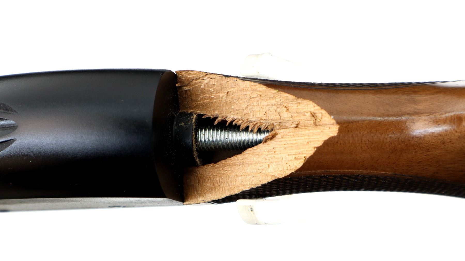 Main Description: Red fiber optic front bead, Parkerized vent rib barrel with rust spots, grooved black alloy receiver. Two piece wood stocks, finger grooved checkered forearm, checkered pistol grip which is broken, pieces included, black rubber recoil pad, swivel studs. Accessories include: Spare Full and Cylinder Chokes with Wrench and Case