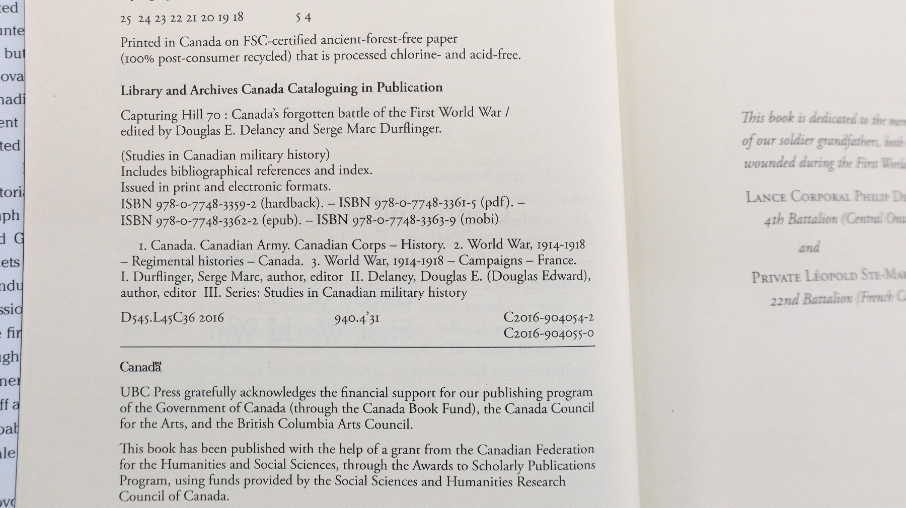 (1) "CANADA'S FORGOTTEN BATTLE OF THE FIRST WORLD WAR" EDITED BY DOUGLAS E. DELANEY AND SERGE MARC DURFLINGER, HARD COVER WITH DUST COVER, ISBN: 978-07748-3359-2. SEE PHOTOS.