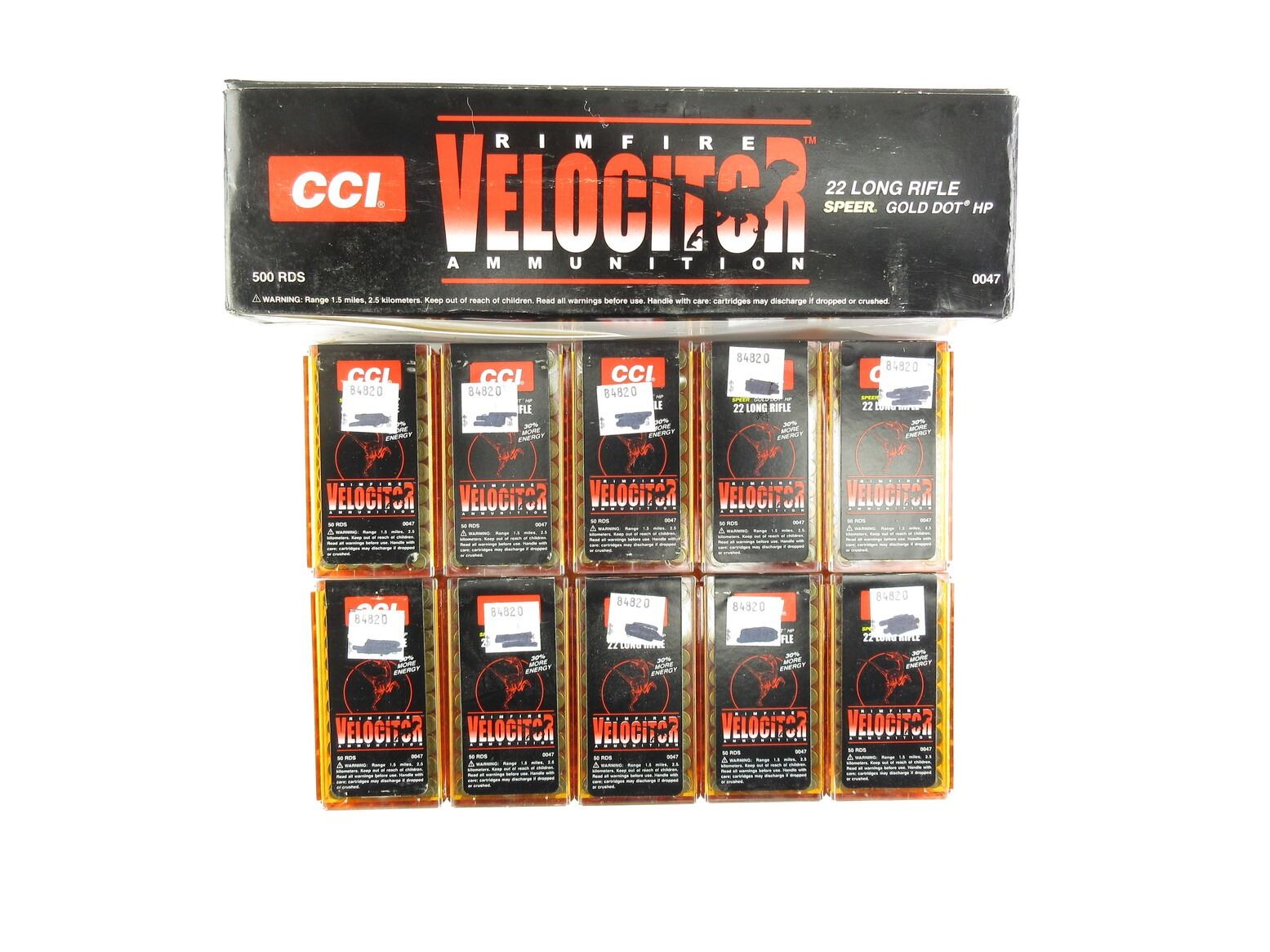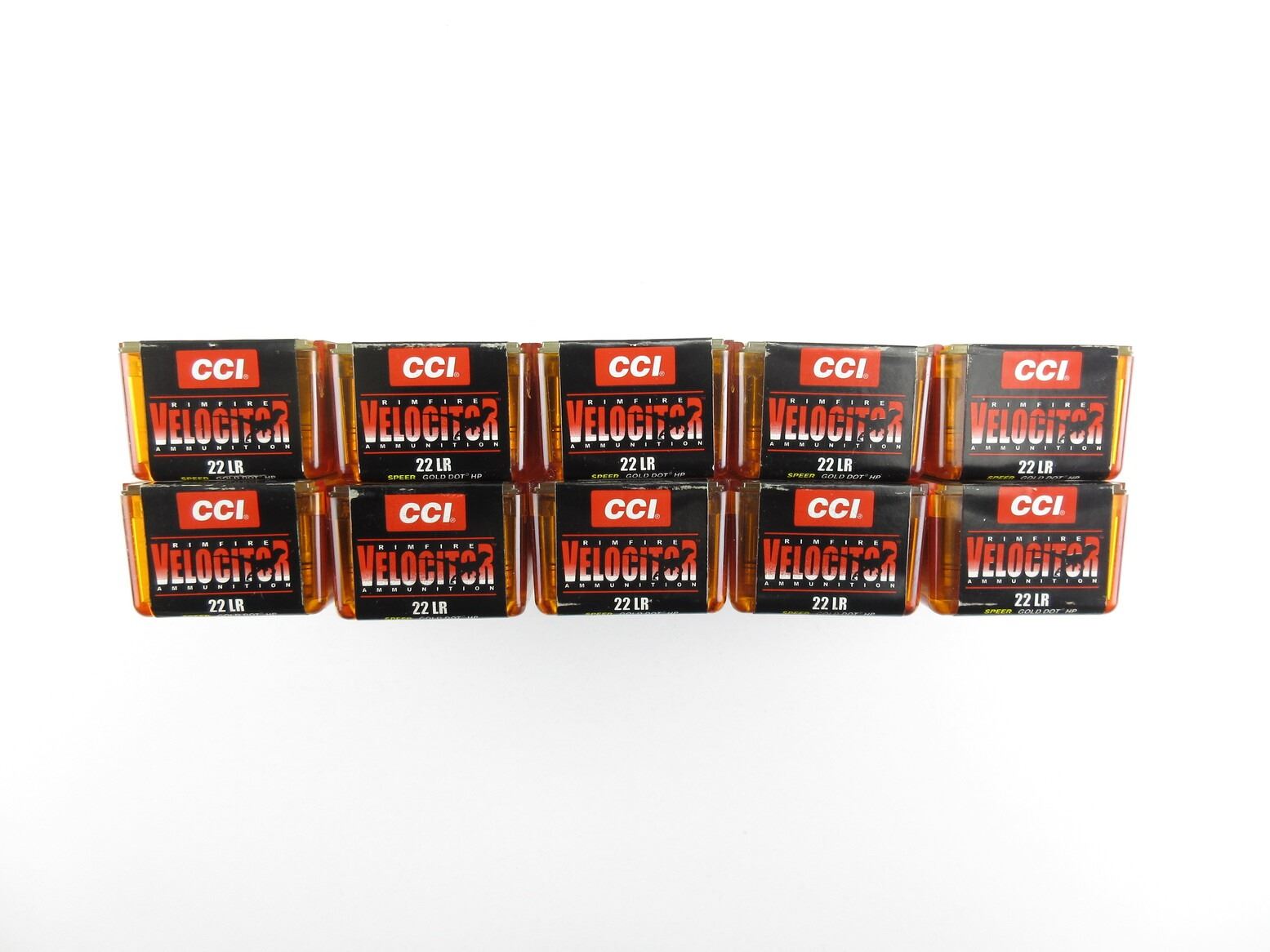 CCI VELOCITOR .22 LR AMMO LOT. LOT INCLUDES; APPROX. (500) RNDS, SPEER GOLD DOT HP, UNOPENED BOXES.
