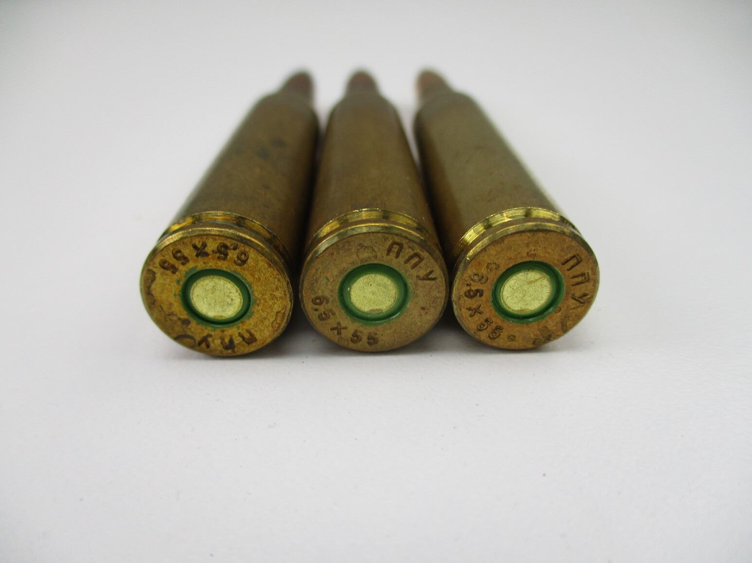 CENTURY 6.5X55MM AMMO , 70 RNDS, ASSORTED BULLET TYPES. LOT ALSO INCLUDES A PLASTIC AMMO CONTAINER. , THERE ARE NEW SHIPPING RESTRICTIONS, PLEASE MAKE SURE YOU HAVE READ AND CONFIRMED WE CAN SHIP TO YOU BEFORE BIDDING ON THIS LOT. PLEASE SEE LOT 0 IN THIS SESSION. NO REFUNDS WILL BE ISSUED, OR BIDS RETRACTED.