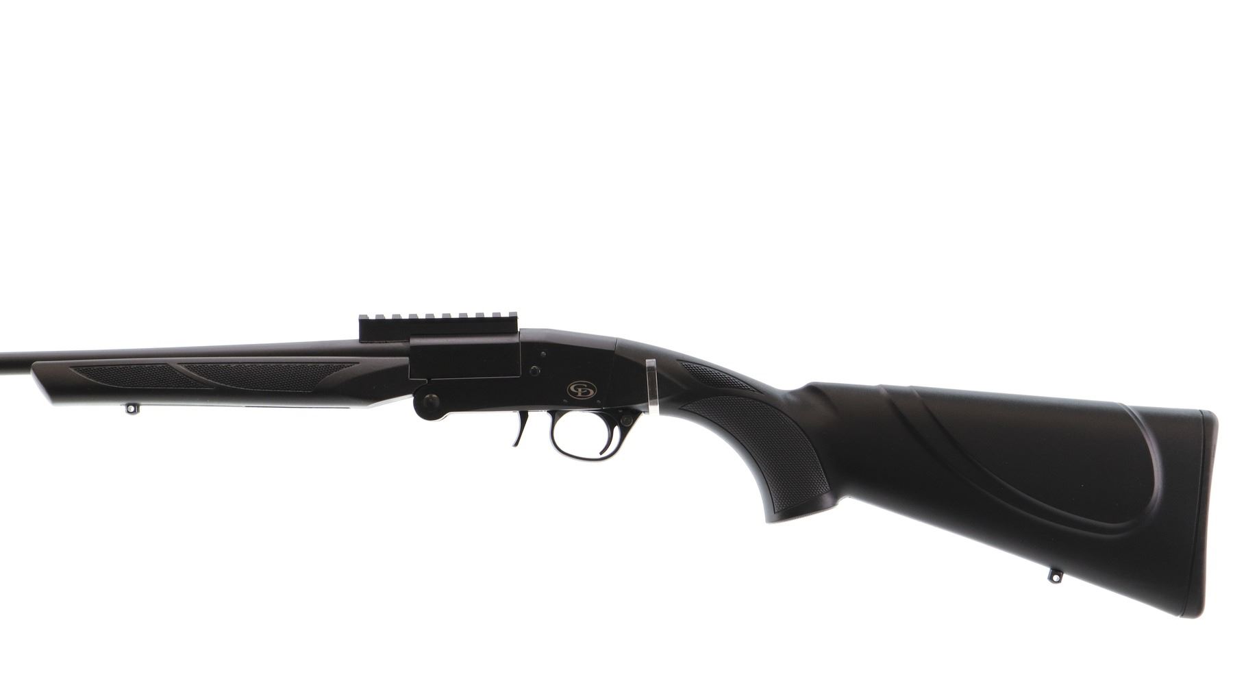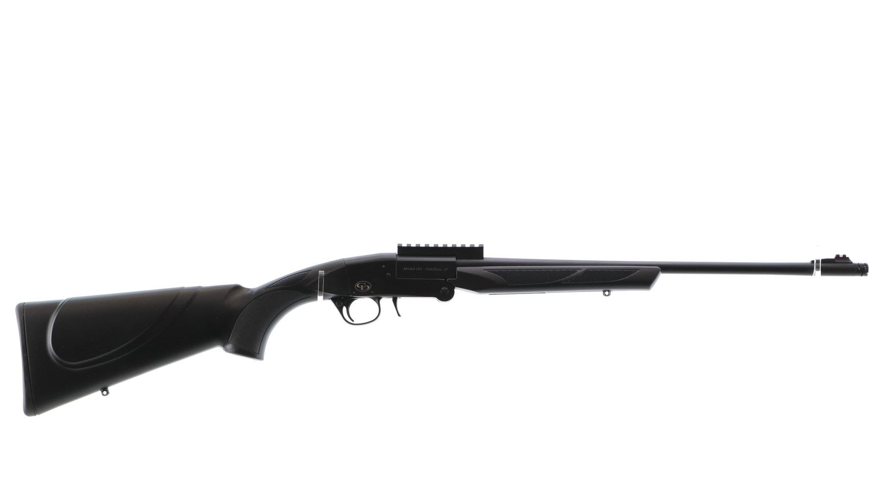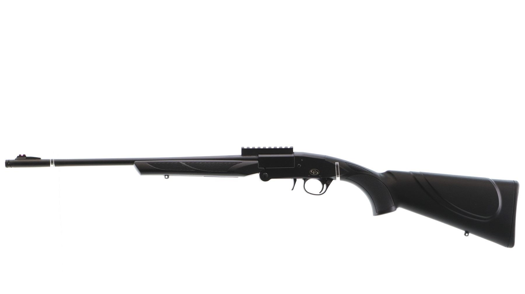 Main Description: Appears as new, May have been test fired in factory. Red fiber optic blade front sight with ramp. One piece black polymer scope rail acts as the rear sight, black matte metal finish, extractor, opening lever in front of trigger guard. Two piece black synthetic stocks, checkered forearm and pistol grip, ambi cheek rest, grip cap, checkered black polymer butt plate, swivel studs.