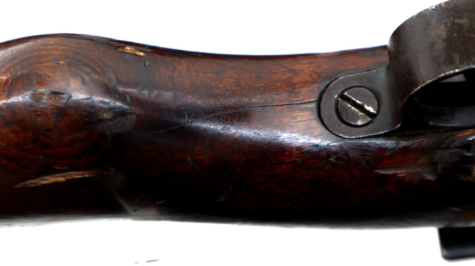Wear: Metal finish turning brown with pitting, light rust, scratches, handling marks and wear. Stocks show marks, scratches and wear.
