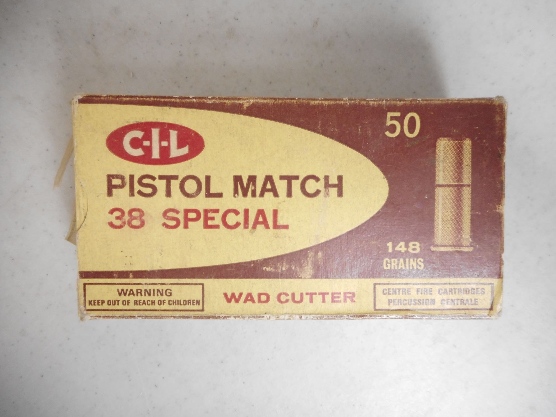 CIL 38 SPECIAL PISTOL MATCH AMMO , 25 RNDS 38 SPECIAL AMMO, 25 BRASS IN VINTAGE CIL BOX