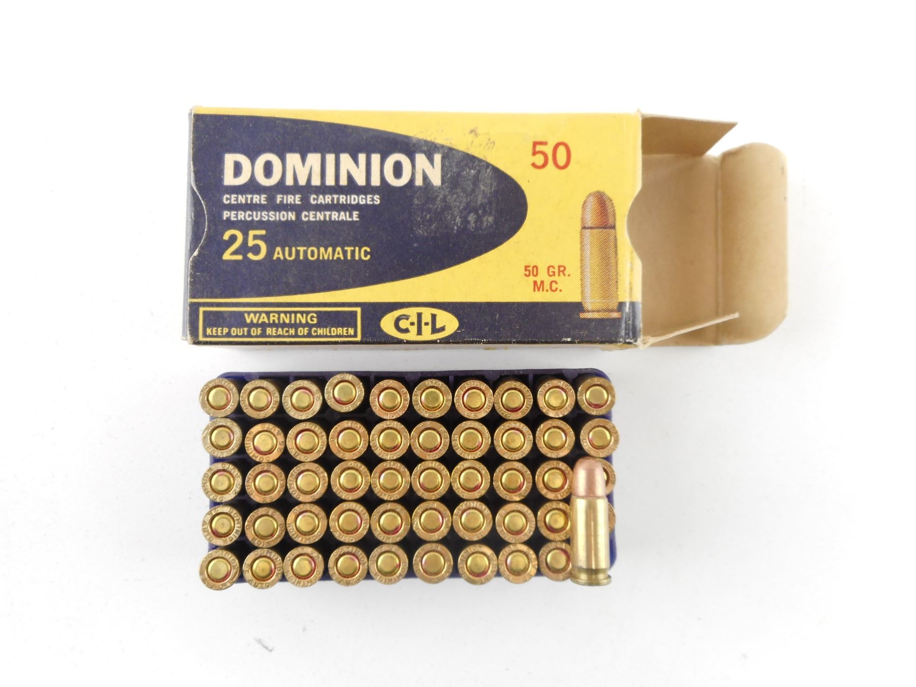 CIL DOMINION CENTRE FIRE 25 AUTOMATIC , 25 RNDS, DOMINION CENTRE FIRE CARTRIDGES, 50 GR, MC