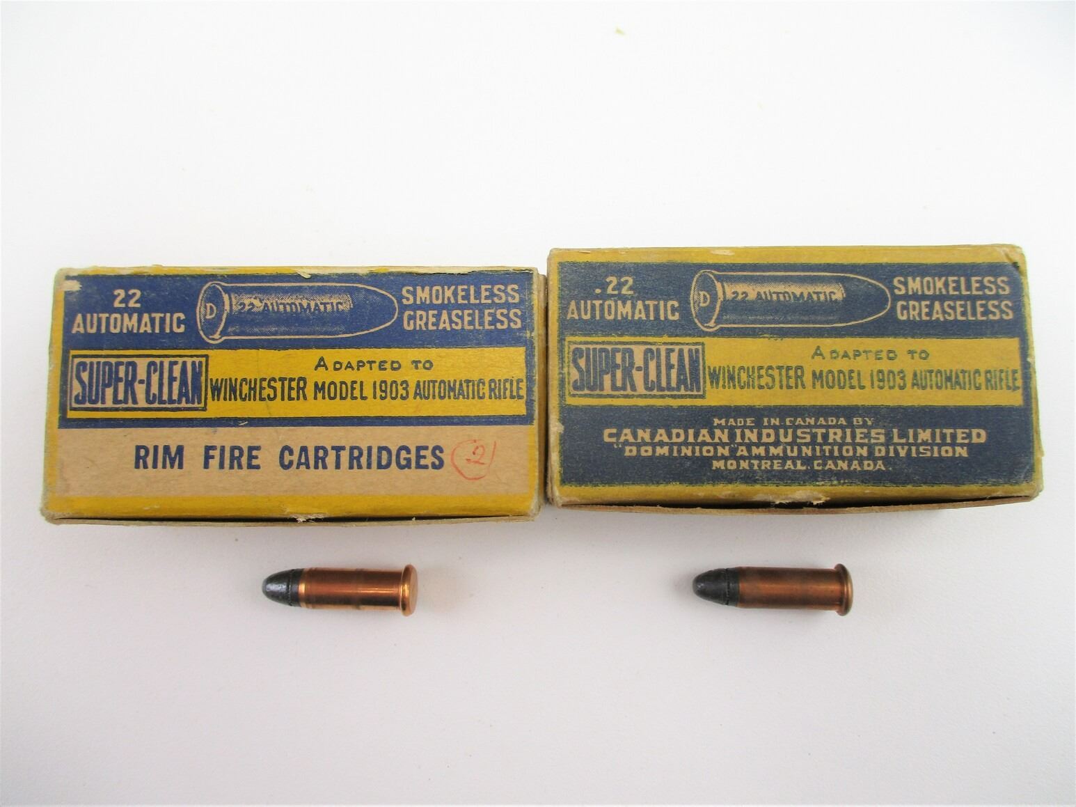 COLLECTIBLE .22 AUTO AMMO, 100 RNDS, 45 GRNS (STATED ON BOX, NOT CONFIRMED), IN COLLECTIBLE AMMO BOXES, THERE ARE NEW SHIPPING RESTRICTIONS, PLEASE MAKE SURE YOU HAVE READ AND CONFIRMED WE CAN SHIP TO YOU BEFORE BIDDING ON THIS LOT. PLEASE SEE LOT 0 IN THIS SESSION. NO REFUNDS WILL BE ISSUED, OR BIDS RETRACTED