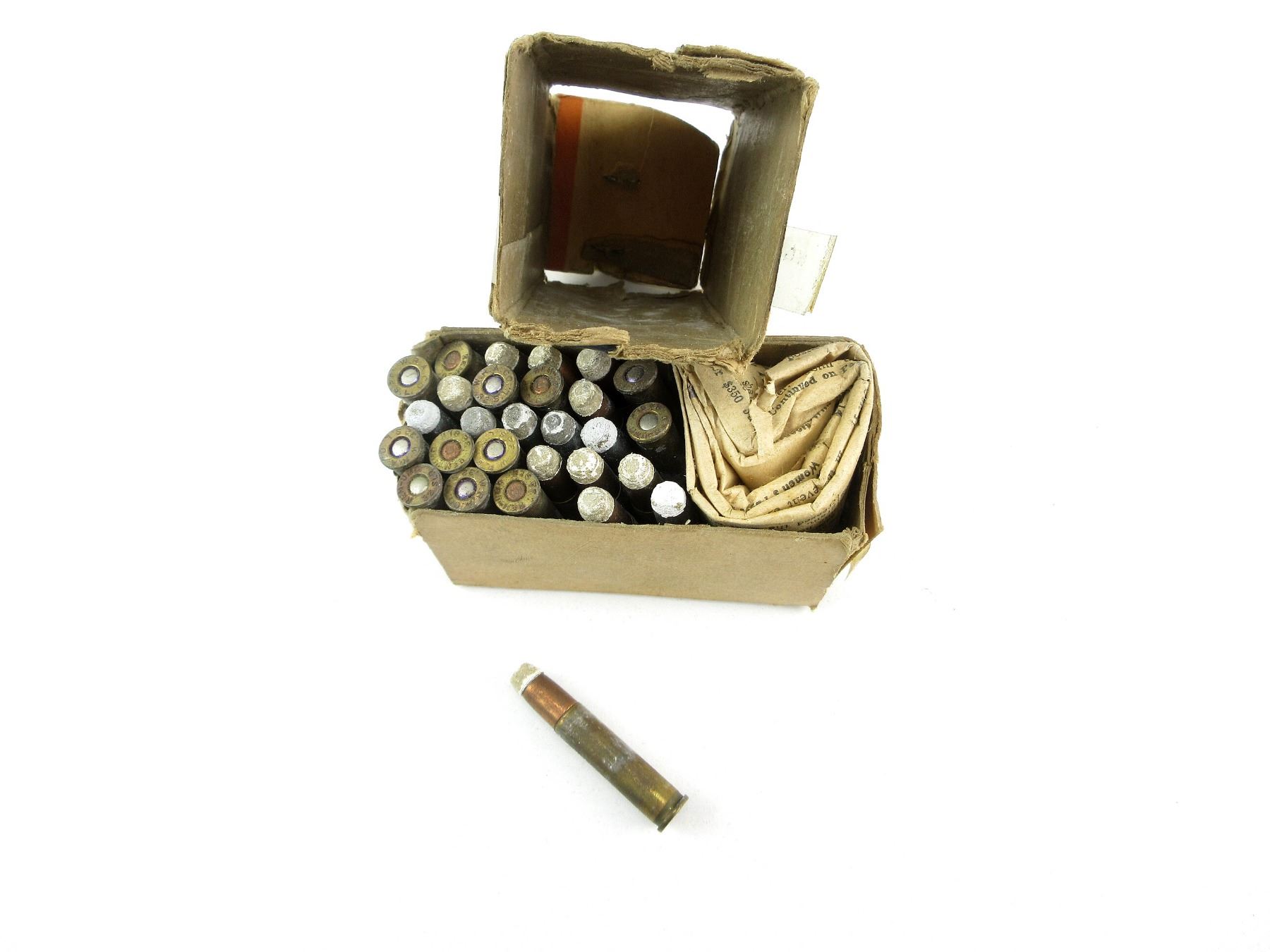 LOT INCLUDES; APPROX. (28) RNDS, VARIOUS MANUFACTURERS INCLUDING; WINCHESTER, REM-UMC, ETC., SOME CORROSION.