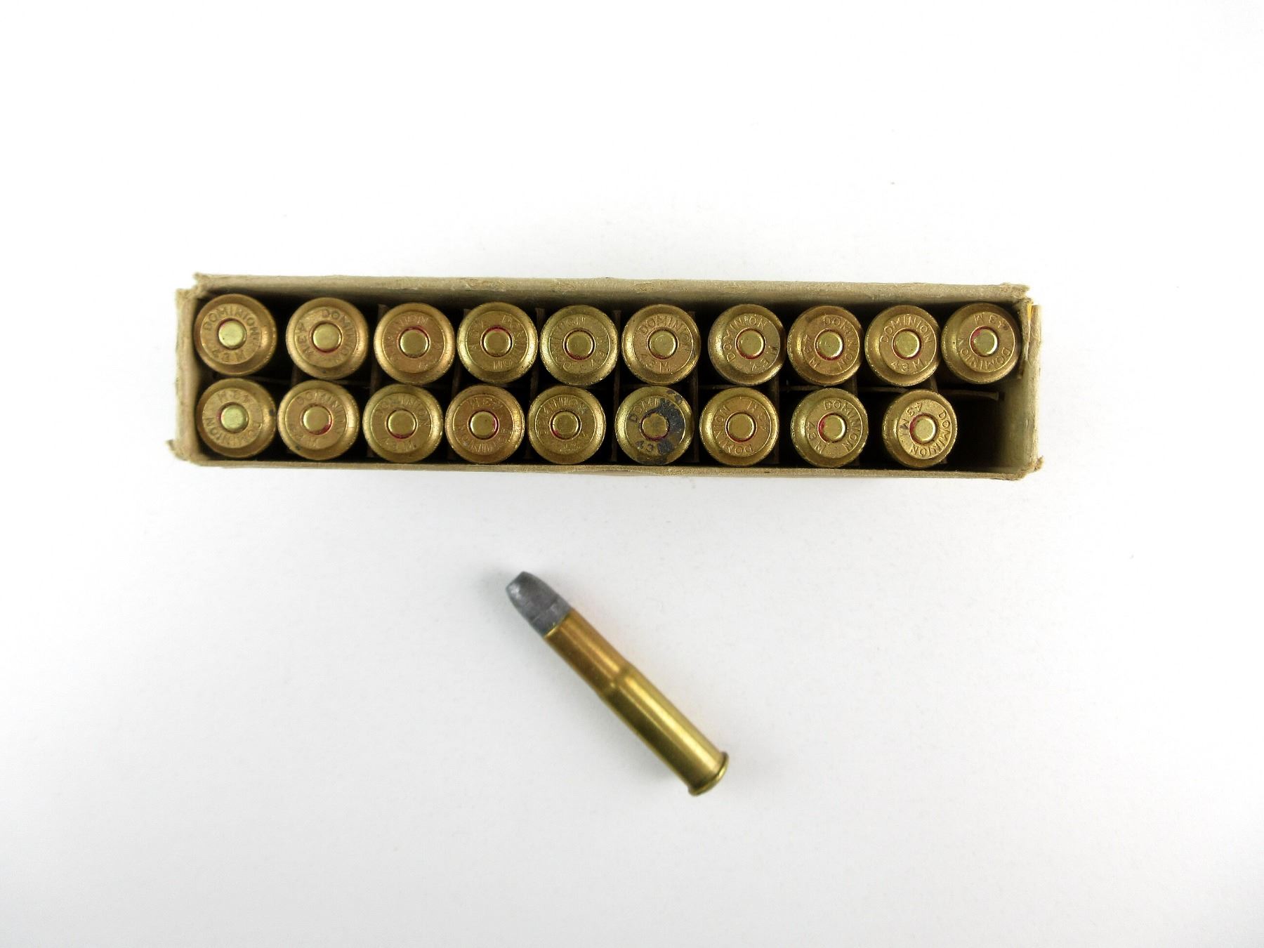LOT INCLUDES; APPROX. (20) RNDS, 385 GRNS (STATED ON BOX NOT CONFIRMED), LEAD, IN ORIGINAL COLLECTIBLE BOX, SHOWS SOME WEAR. ETC., SEE PHOTOS.
