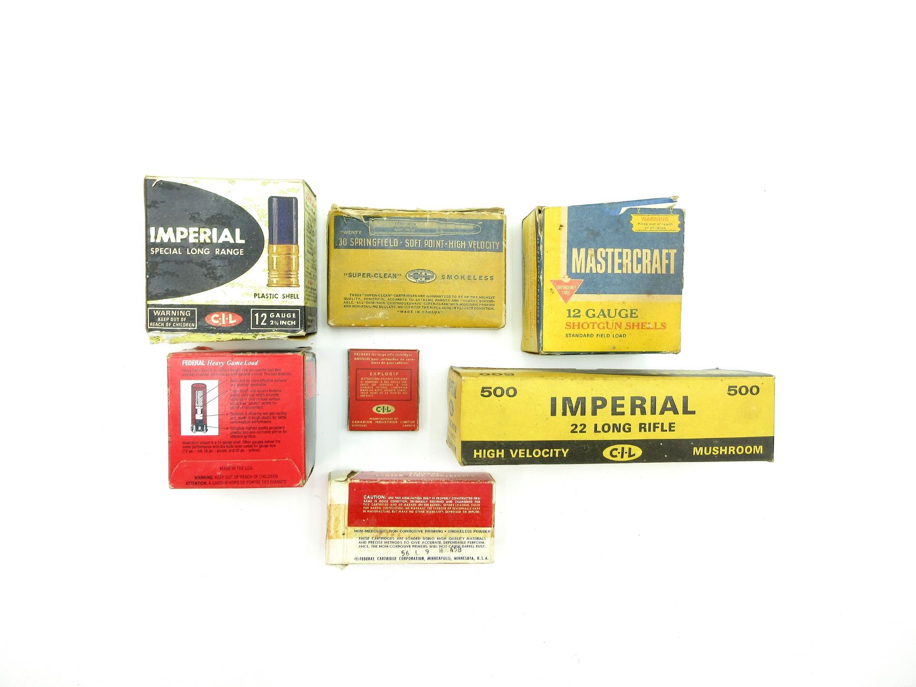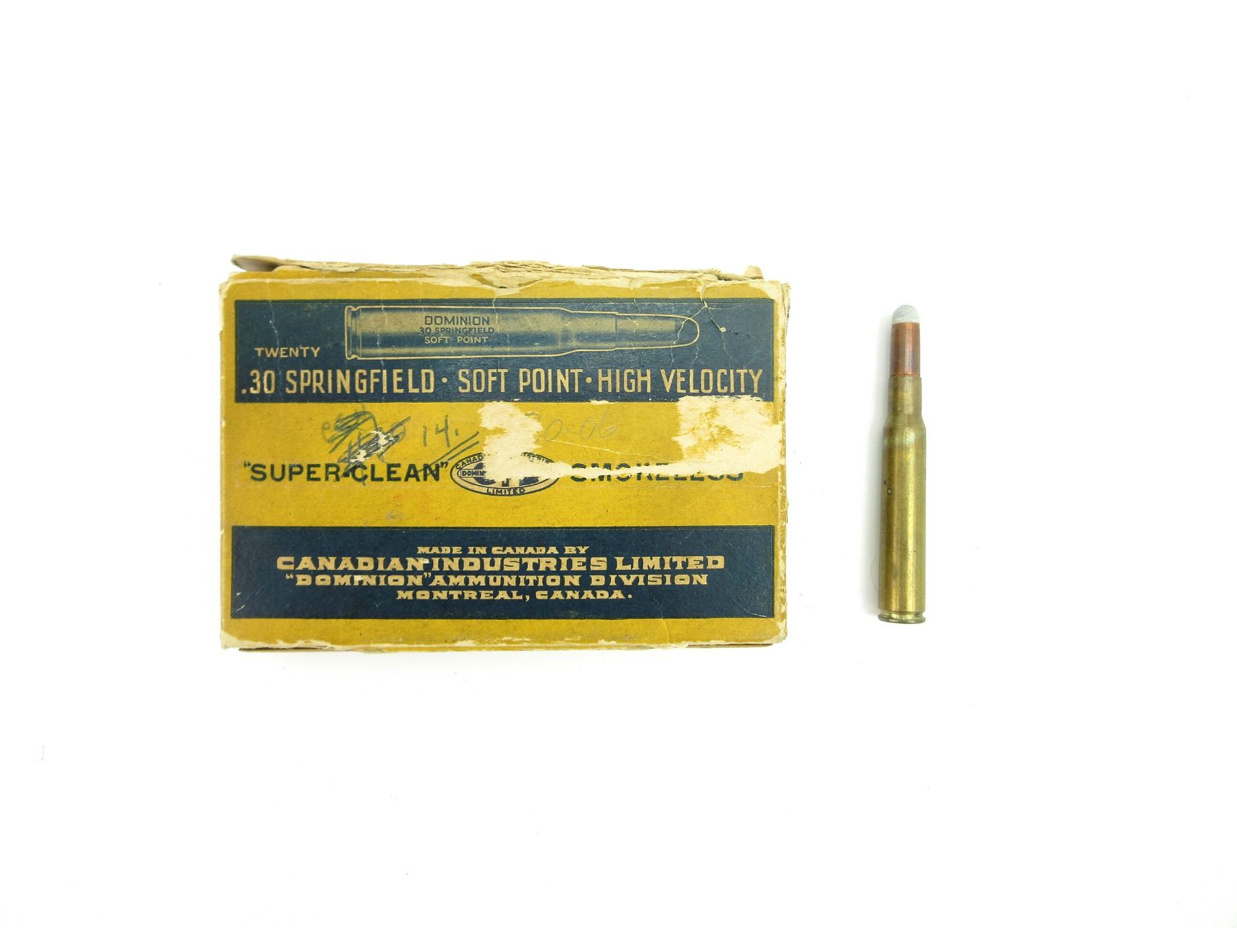 COLLECTIBLE DOMINION .30 SPRG AMMO / NON-PRIMED BRASS CASE AND COLLECTIBLE EMPTY BOXES LOT